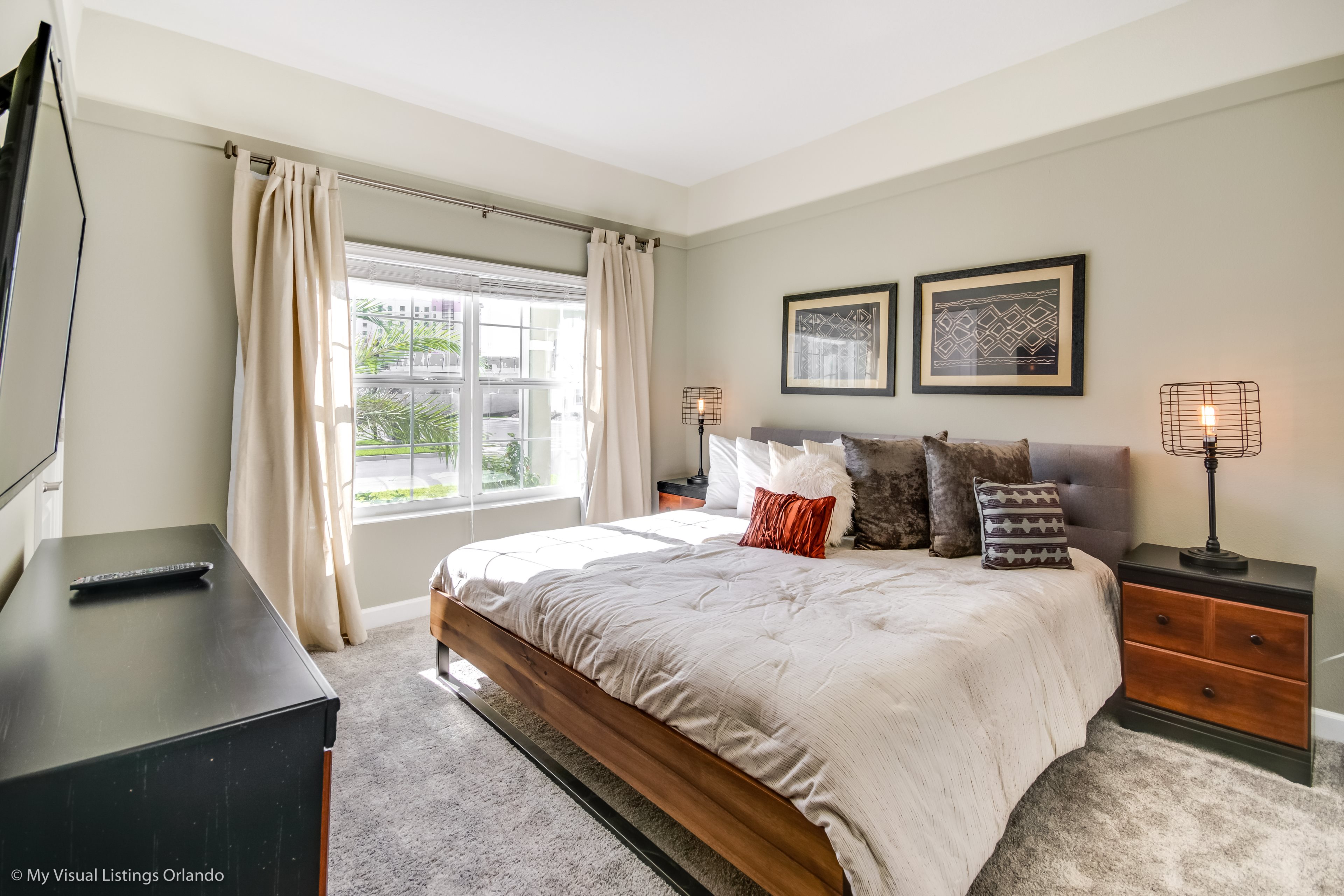 The beautiful modern kitchen features new stainless steel appliances, granite counter tops, pendant lighting and seating for 4 at the breakfast bar. All the cookware and utensils are provided for your convenience. In this open floor plan, step into the great room where you will find a lovely formal dinning area with seating up to 6 guests. Enjoy lounging around after a long day at the Parks in the contemporary living room featuring a sofa, love seat and large wall mounted flat screen TV. Keep the whole family happy with the Free Wi-Fi.