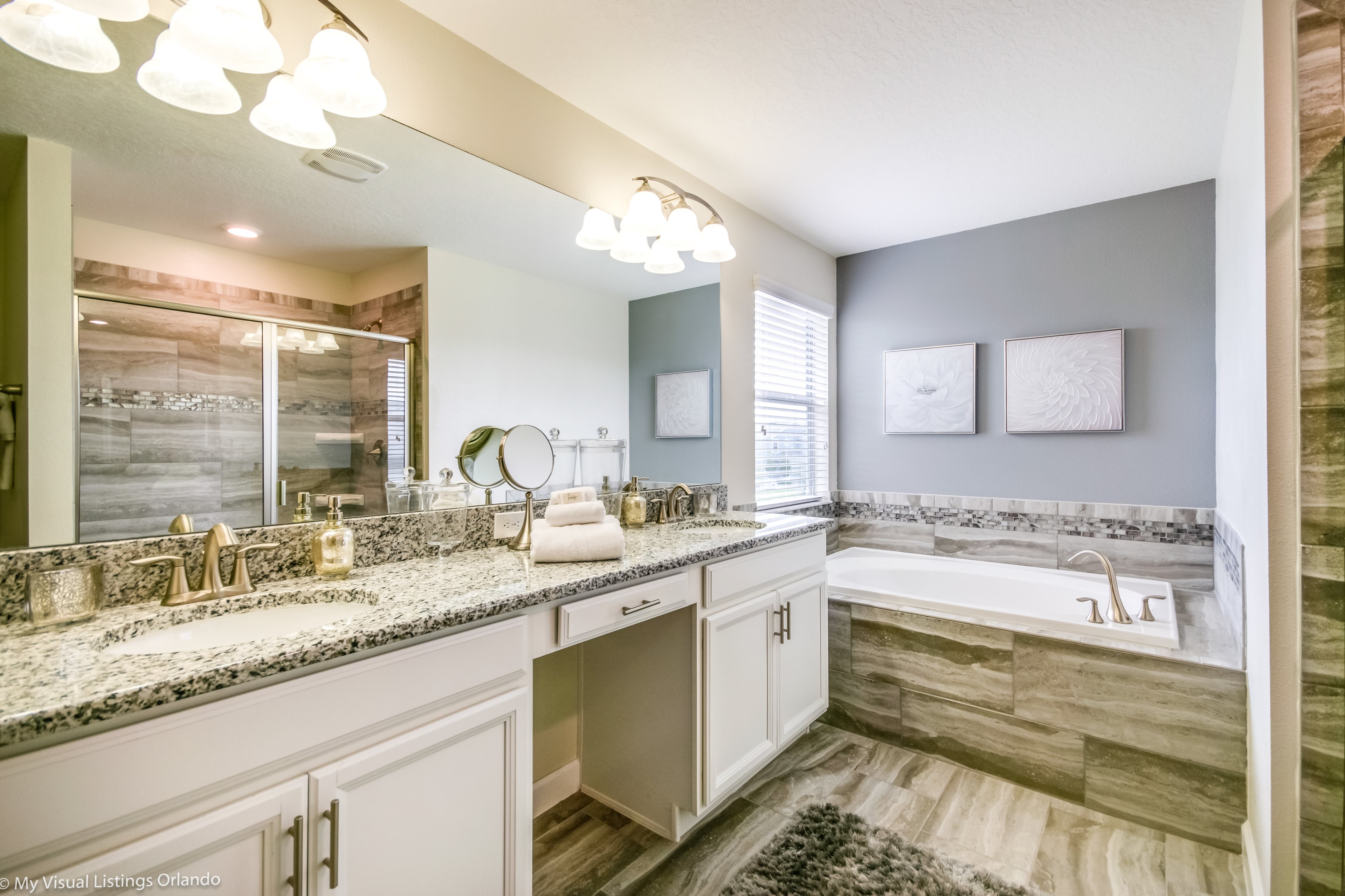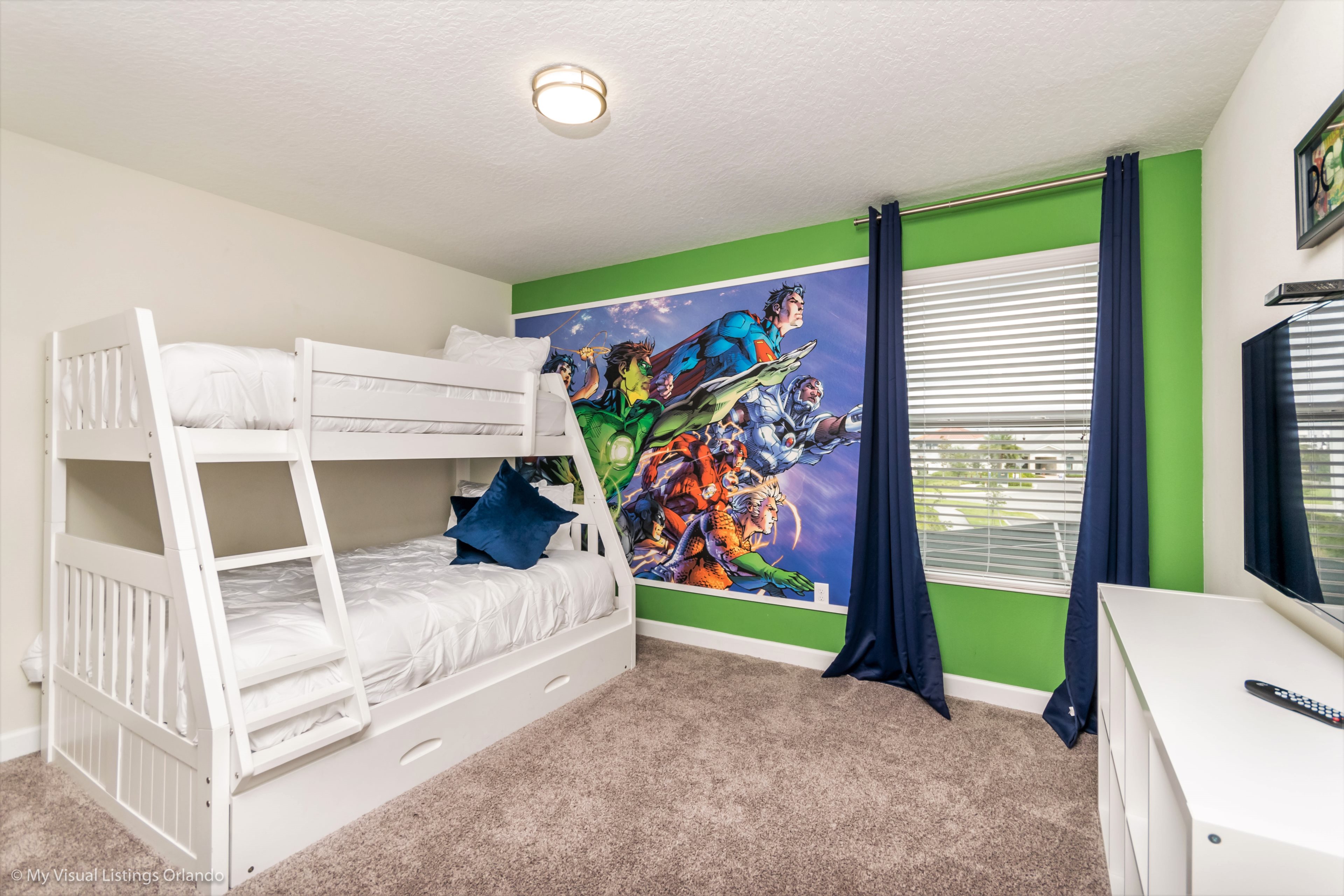 Welcome to the SINGLE FAMILY HOME of your dreams in Kissimmee!! This 6 bedroom and 5 bathroom rental home in 2 floors is located in the Storey Lake Resort Community. The 6 bedrooms and 2 living rooms, all together with 7 LED TVs, come in handy to sleep up to 13 guests (3 king beds 2 queen with twin and and 2 set of twins ). The large kitchen is a chef’s dream to cook in, with upgraded cabinetry, granite countertops and black/stainless steel appliances. Take a break and cool off in your very own pool/jacuzzi and dine poolside at your leisure. For your convenience, this home includes a washer and dryer, FREE WIFI . With this dream home, a fantastic vacation awaits for your Family...