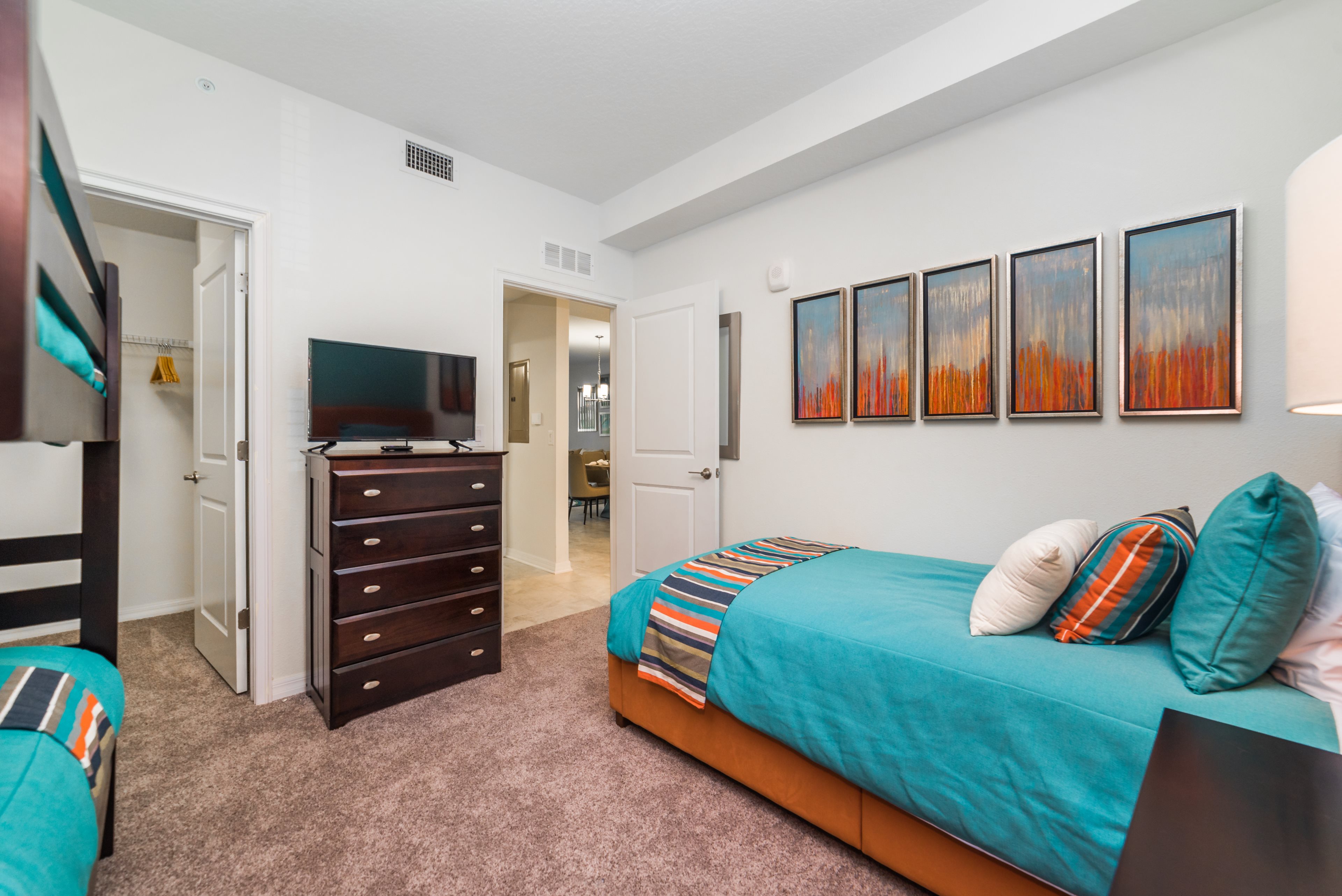Storey Lake features all the exceptional facilities you would expect from a resort-style resort, plus a little bit more. The large clubhouse overlooks a communal swimming pool generously decked out with sun loungers and cabanas and a hot tub for you to enjoy. A poolside bar offers a range of drinks and snacks whilst you sunbathe. Children will love the lazy river, splash pad and waterslide. There is even a man-made beach providing huts for shade and hammocks to relax in, while the resort's lake offers the opportunity to fish, as well as hire canoes or kayaks.