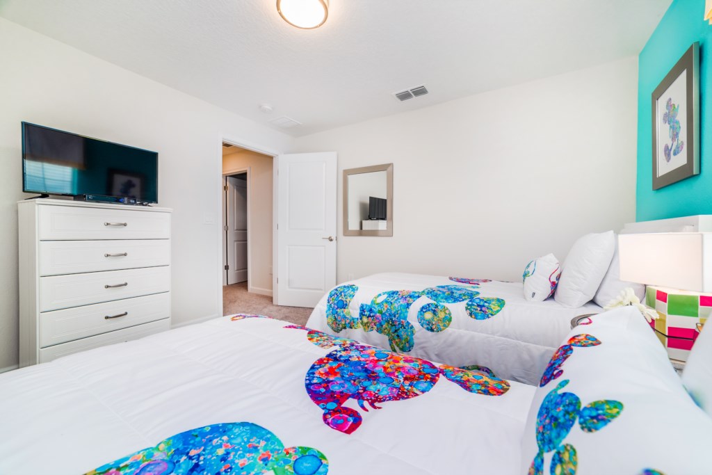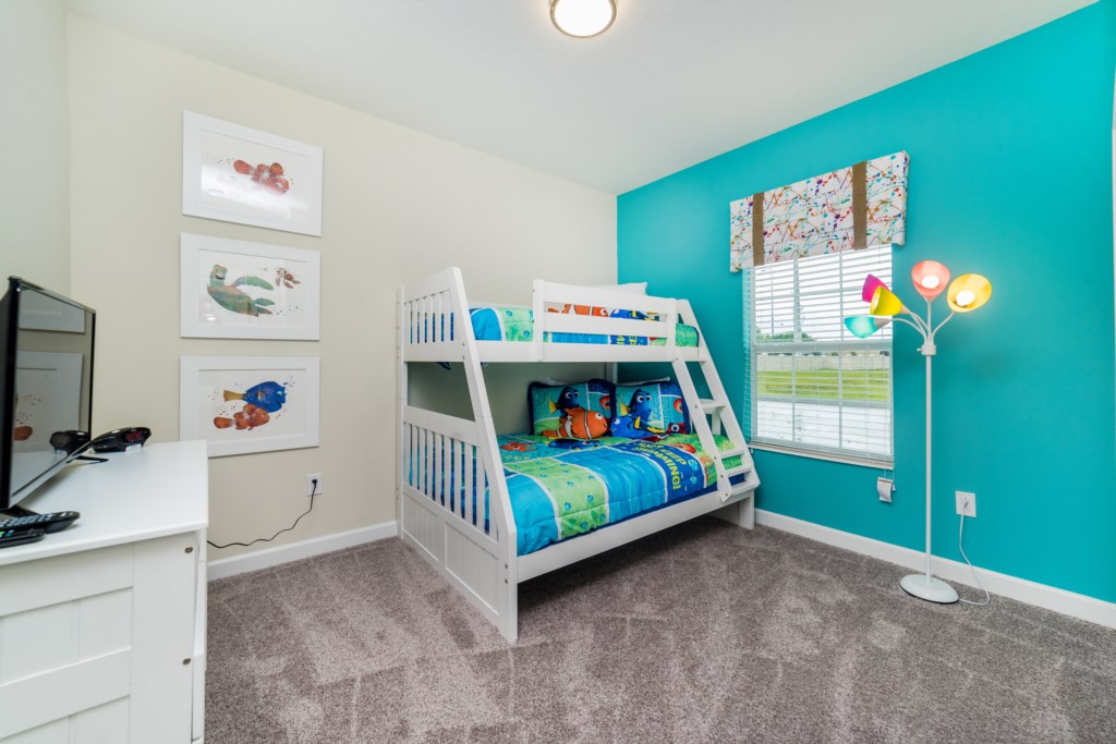 The Nemo bedroom includes a twin over full bunk-bed, the Minnie and Mickey bedroom features two twin size beds. Each bedroom has a flat screen TV and access to complimentary WI-FI.
