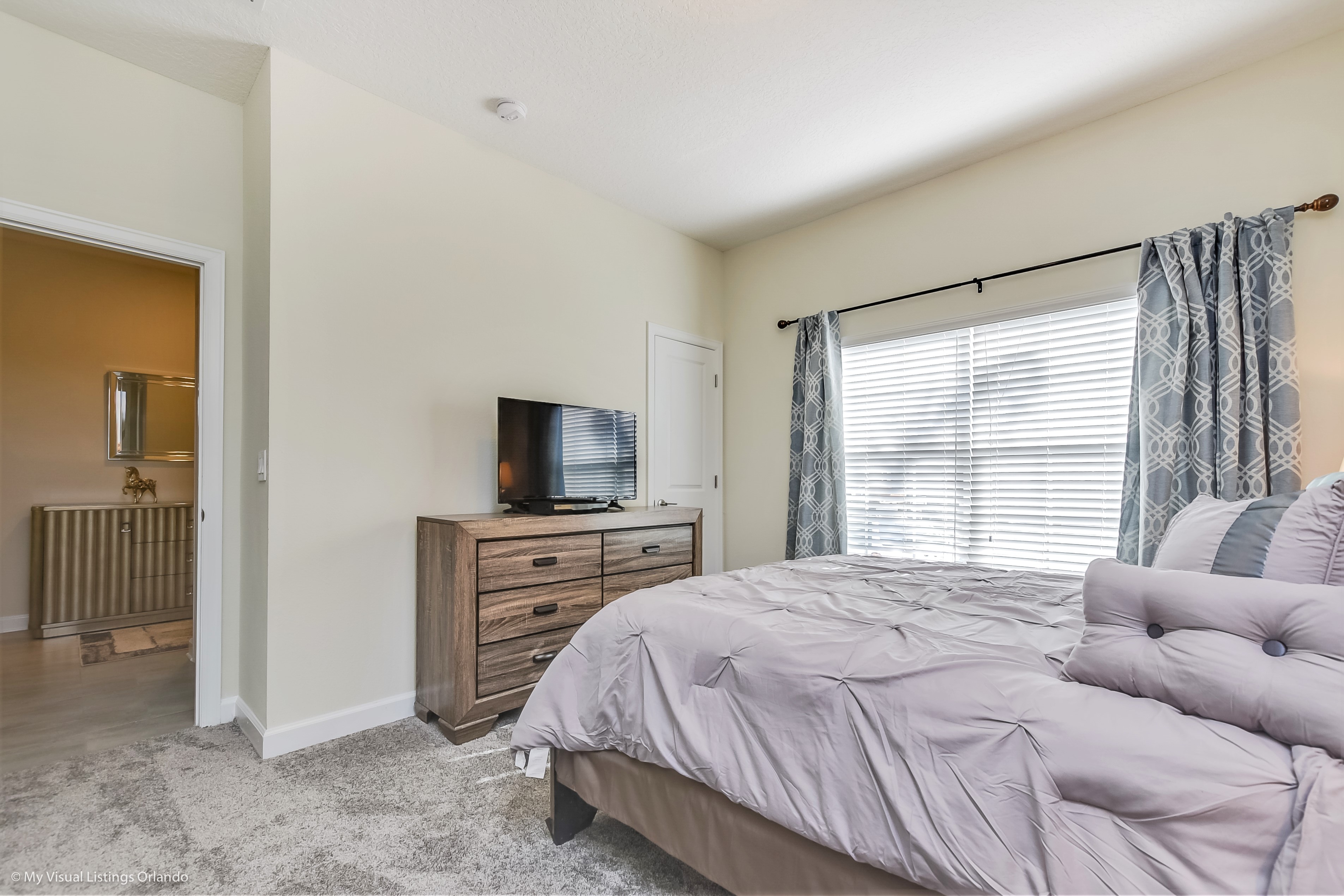 Downstairs you will find the guest suite featuring a King size bed and flat screen TV. Step outside onto the patio to your very own private Splash Pool