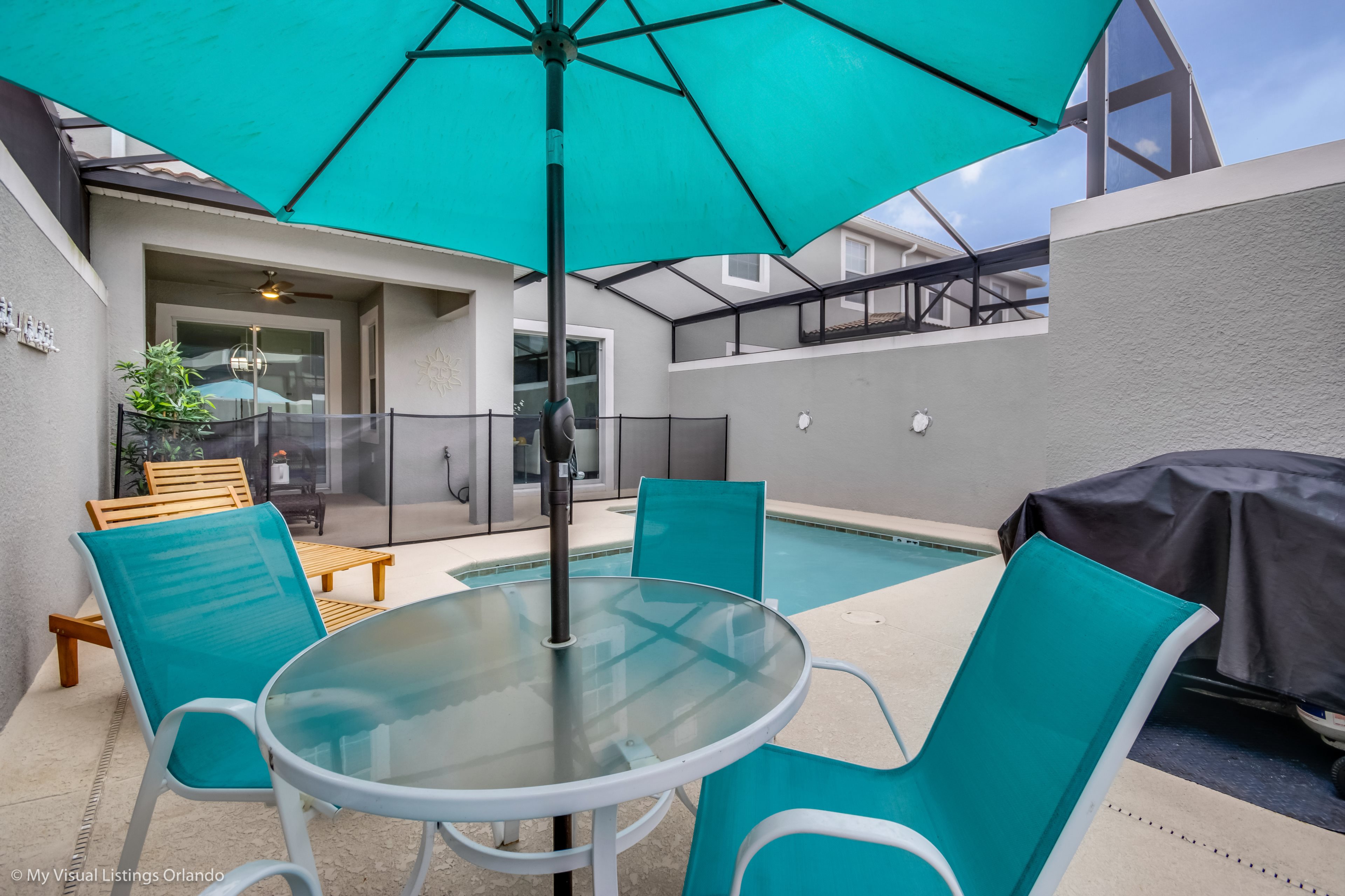 Downstairs you will find the guest suite featuring a King size bed and flat screen TV. Step outside onto the patio to your very own private Splash Pool