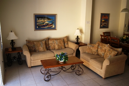 This fantastic 2 storey townhouse at Terre Verde provides a comfortable living space big enough for the whole family. With 3 bedrooms and 2.5 bathrooms, this townhouse can occupy up to 8 guests at once. The beautiful open plan layout of this townhouse makes for easy and open living. Surrounded by pretty trees and greenery, you’ll really feel like you’re on vacation the moment you pull up to the home.