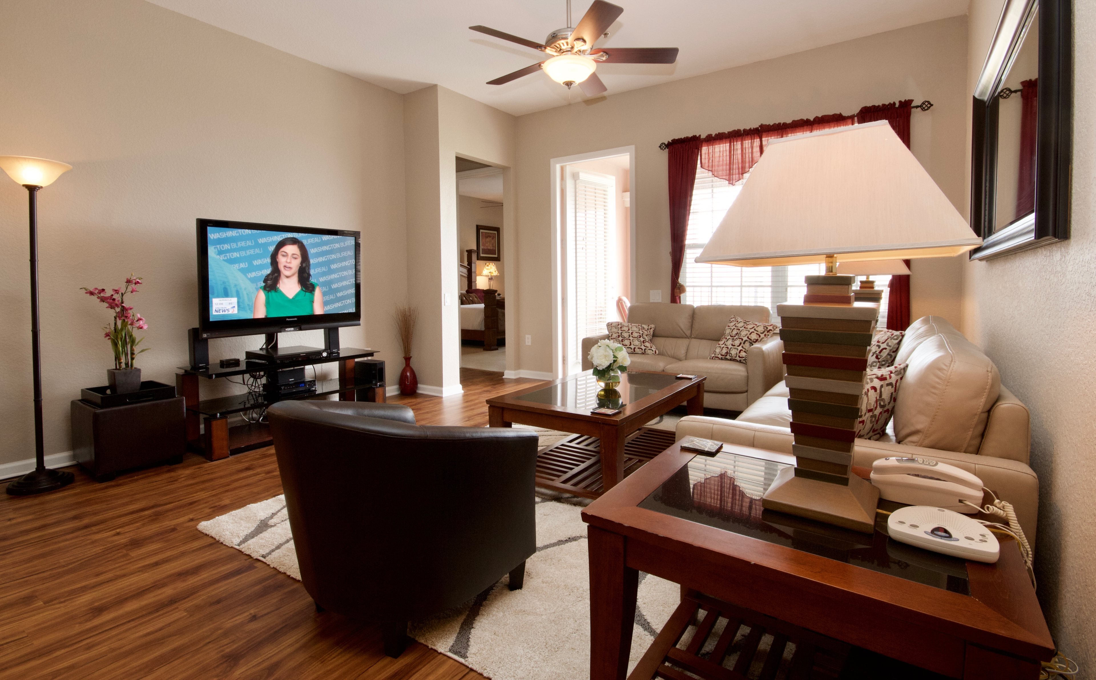 With all this excitement on your doorstep, Vista Cay Resort offers the perfect haven to retreat to after a fun-filled day at the parks. A beautiful, gated community, Vista Cay Resort is a lakeside development surrounded by attractive palm trees and fountains amidst perfectly manicured gardens. The resort features Tuscan-themed, deluxe 1,2 or 3 bedroom apartments or condo suites with superb communal facilities including a large clubhouse overlooking a fabulous, infinity-edge swimming pool, complete with hot tub and spectacular views of Lake Cay. The clubhouse features a state-of-the-art fitness centre and a games room which includes billiards, table football and arcade games. There is also a basketball court for the more active guest and a play area for children. A computer room and meeting rooms are available or you can kick back and enjoy a movie in the resort's very own cinema lounge. A concierge desk is available daily from 8am to 2pm and there is a gift shop for those last-minute souvenirs.