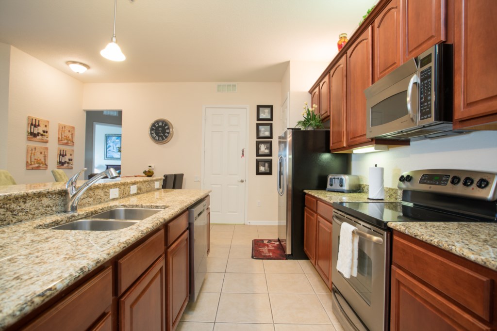 The Space At 2001sf there is plenty of room for everyone. The open plan living area, with cosy seating area and 55" TV leads off a fully-equipped high-end kitchen with granite counter tops and stainless steel appliances.