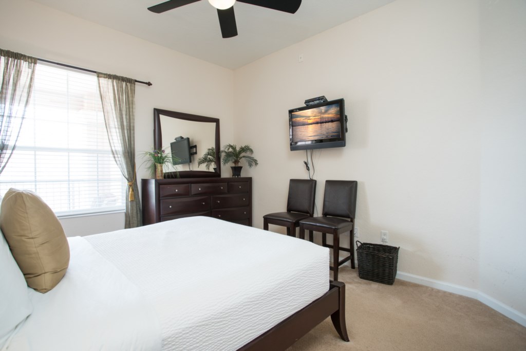Bed & Bath The condo sleeps 8 total: 6 in 3 bedrooms, all with upgraded pillow-top mattresses, large flatscreen TVs and ceiling fans plus a queen sofabed in the den.
