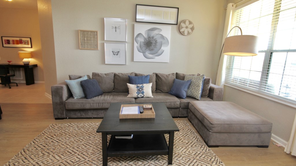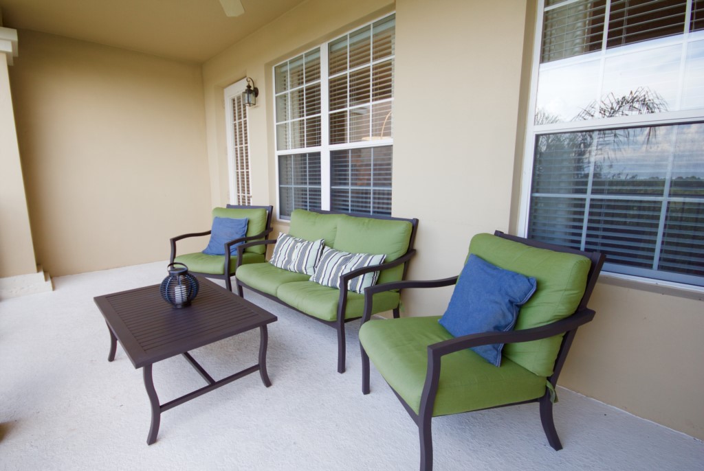Just beyond the living area is a fully furnished lanai, which is the perfect spot to unwind after a hectic day and watch the sunset and the lovely views over Lake Cay with Sea World fireworks.
