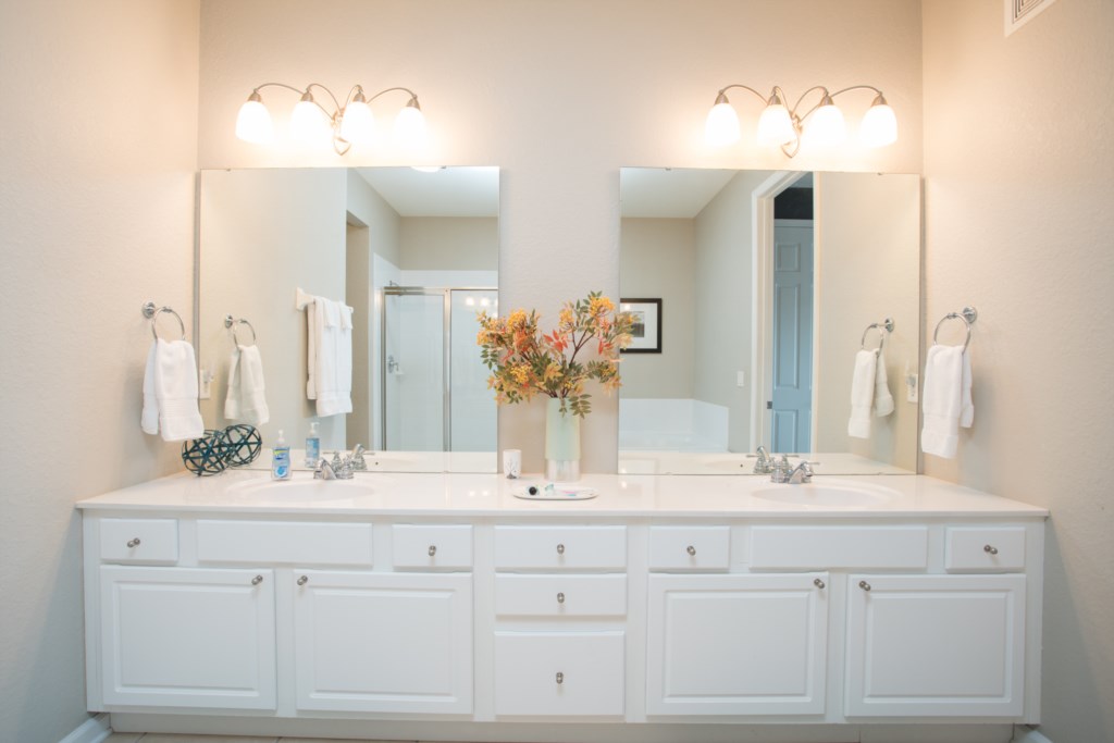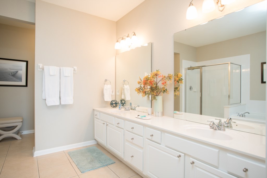 Bed & Bath The master suite features a king size bed with top quality linens and flat screen TV. A spacious en suite bathroom includes his n hers double basins, oversized soaking tub, large walk in shower and privacy WC.