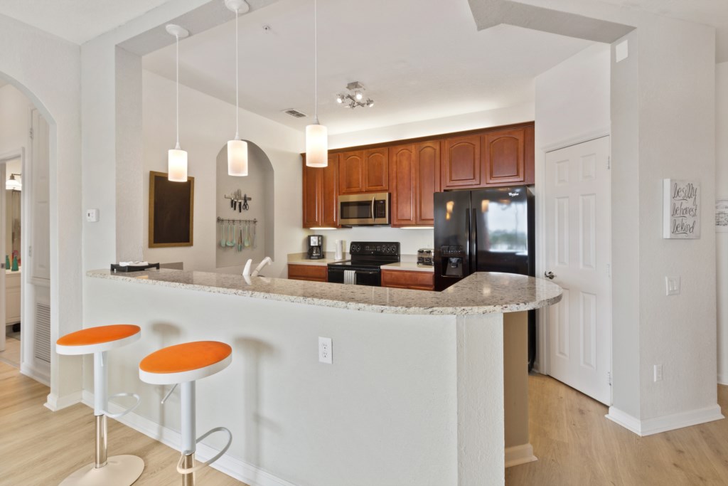 Minutes To All Parks, Walk to Conventions The coolest condo on the resort! Recently remodeled 2 bedrooms, 2 bathrooms in the best possible location, next door to the clubhouse and pool with lake views from every window and the balcony.
