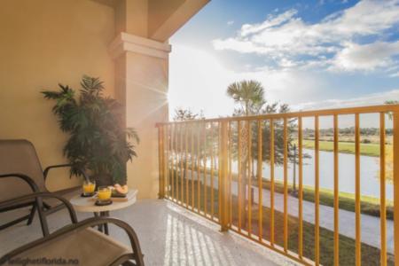 For formal dining, guests can choose to eat in the dining room where there is a dining suite that seats 6 guests. From almost every angle this prime piece of property has gorgeous views of Lake Cay. You’ll be even able to enjoy the dusk views from the balcony with the tasteful outdoor lighting and ceiling fan. Take in the view or relax with a book on the comfortable and modern patio furniture which includes a side table and 4 chairs.