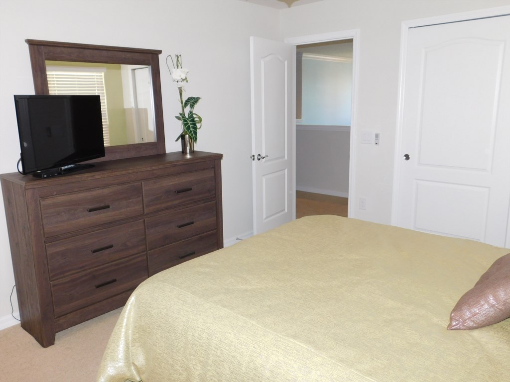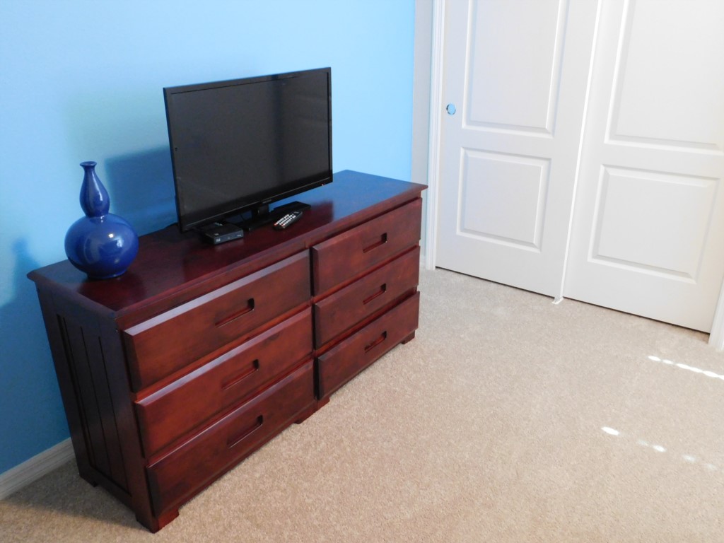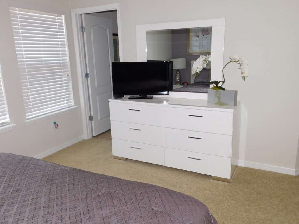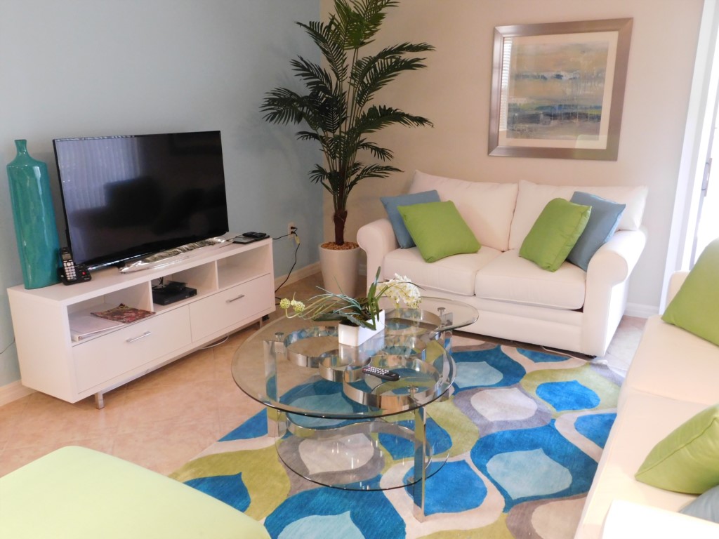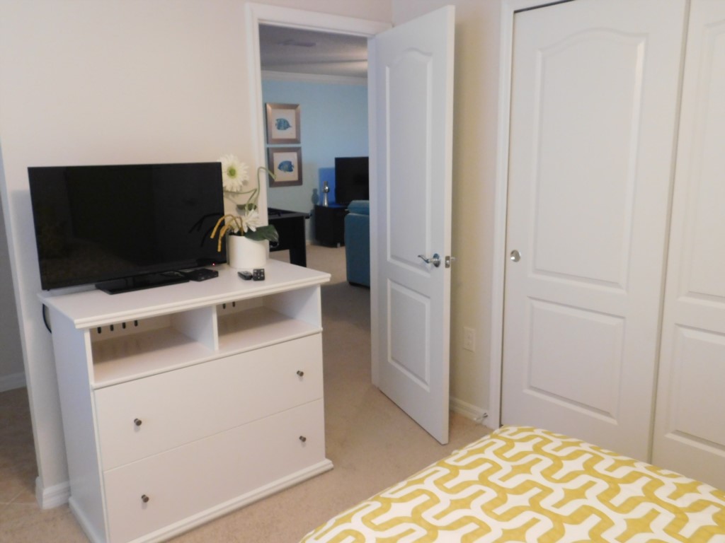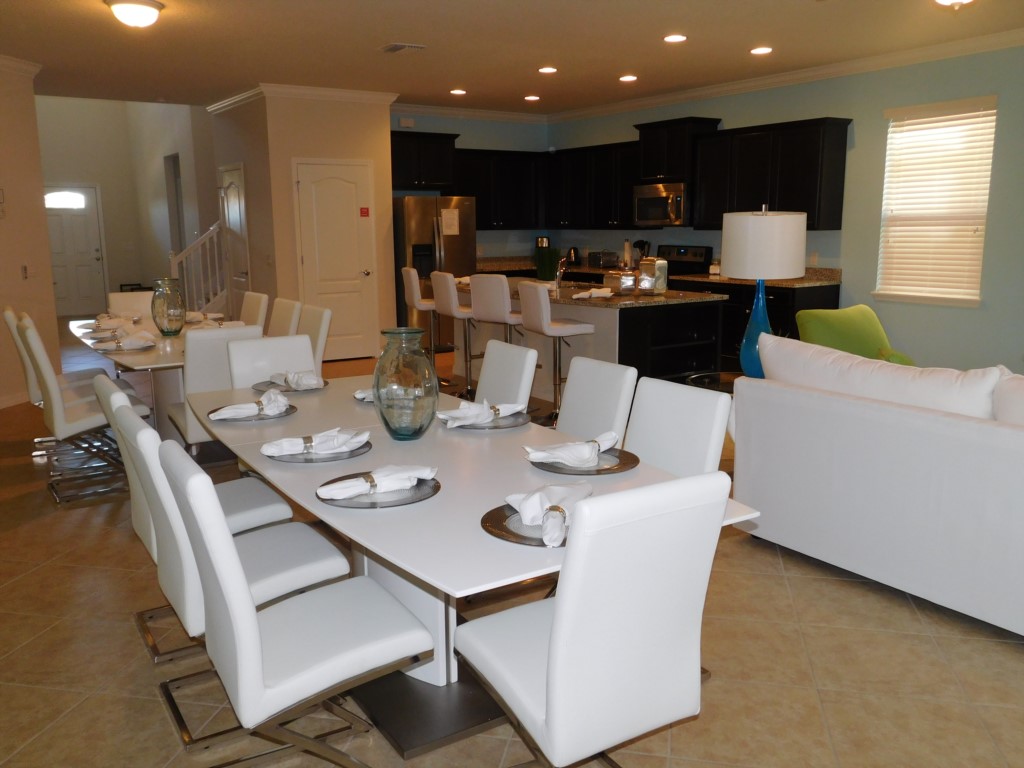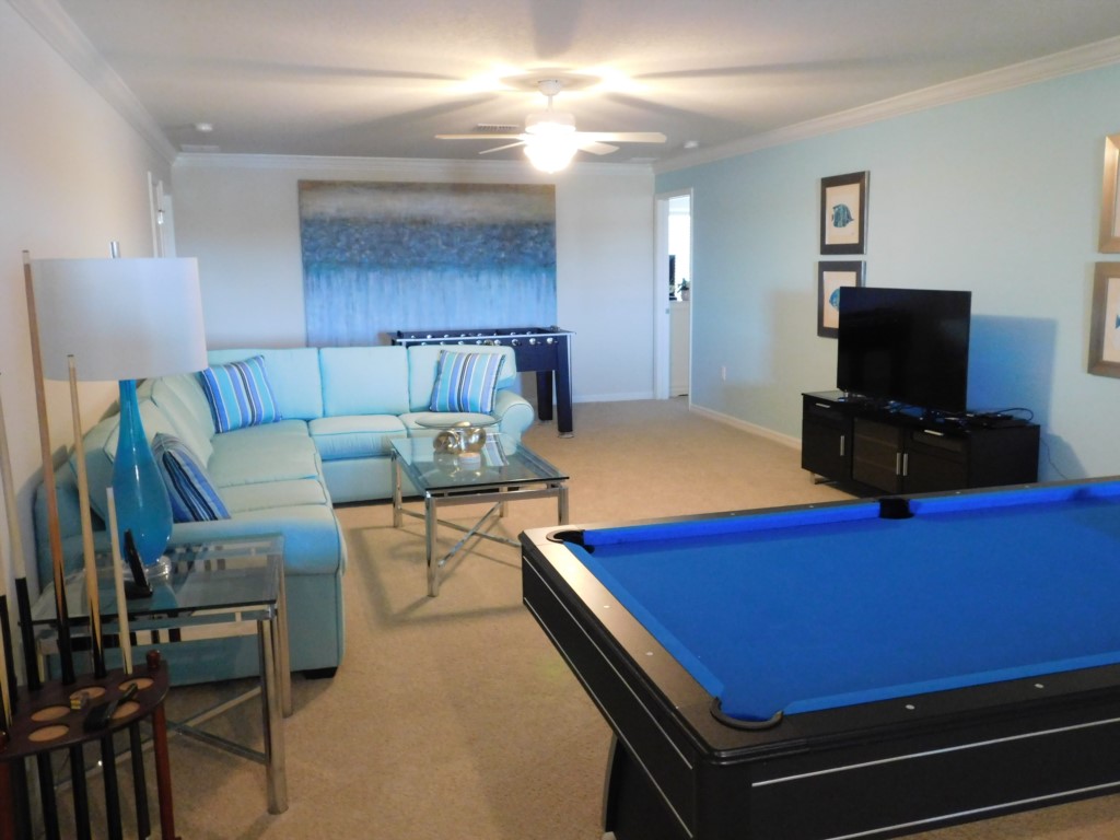 Property Specifications: 50” flat screen TV in each living room on the first & second floors, and 32” flat screen TVs in all bedrooms with the exception of one twin guest bedroom with a 30” flat screen TV. Dinning seats 20 total includes 16 in the dining area and 4 at the breakfast bar. Pool area is made up of furnishings that include 1 table surrounded by 8 chairs, 2 sun loungers and a sectional couch with an ottoman and matching chair (with cushions). All bedrooms include at least 1 bed, 1 nightstand, and 1 chest or dresser as standard furnishings.