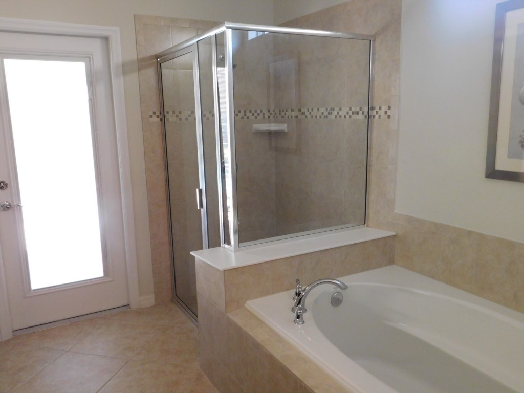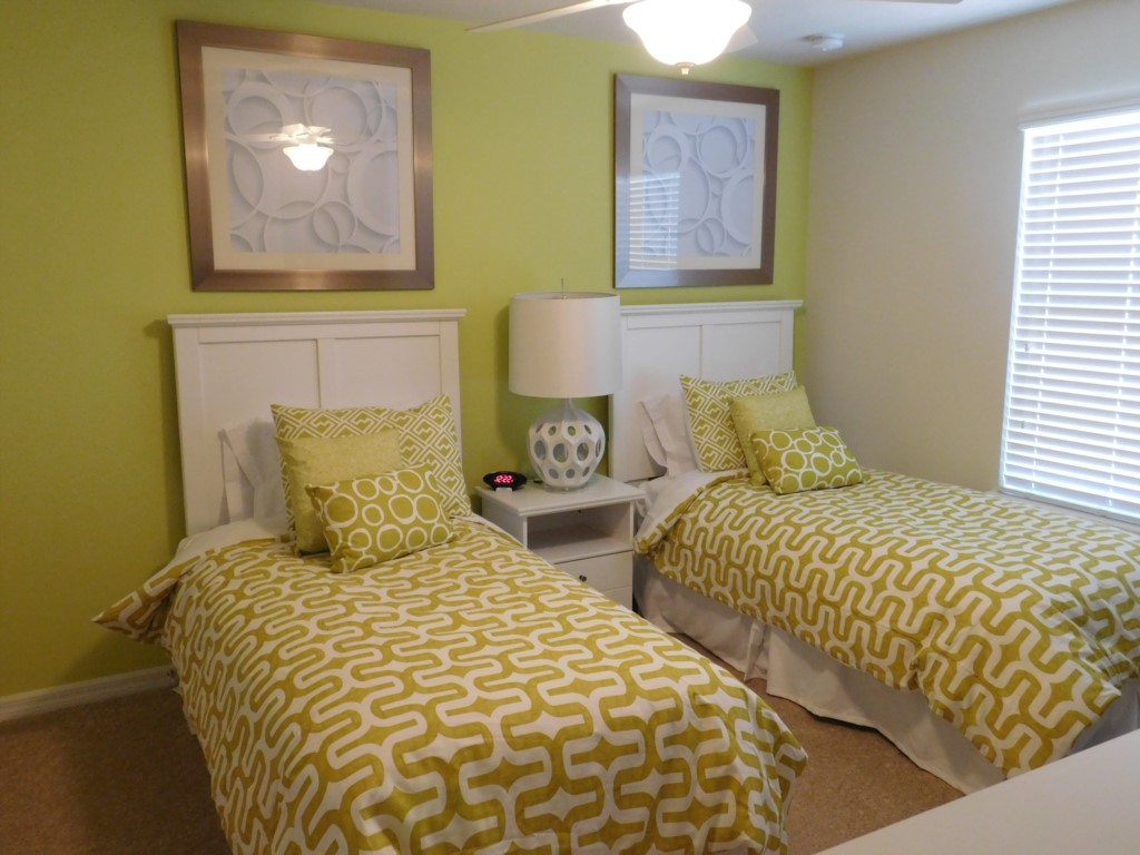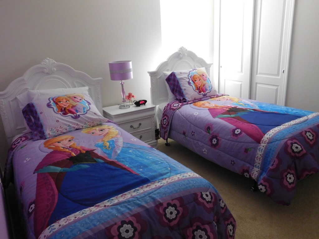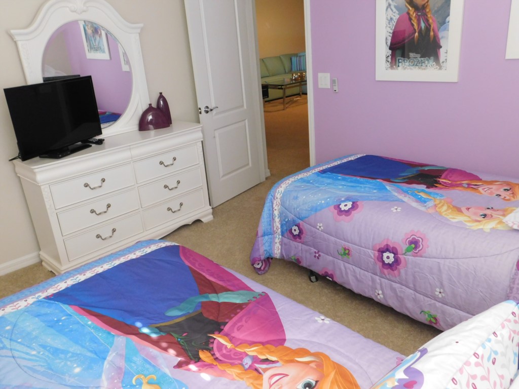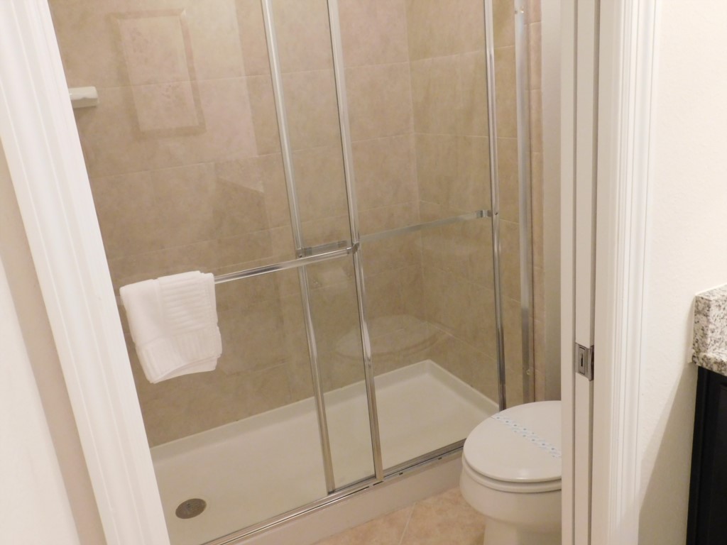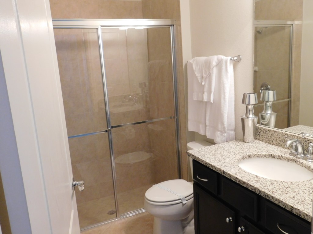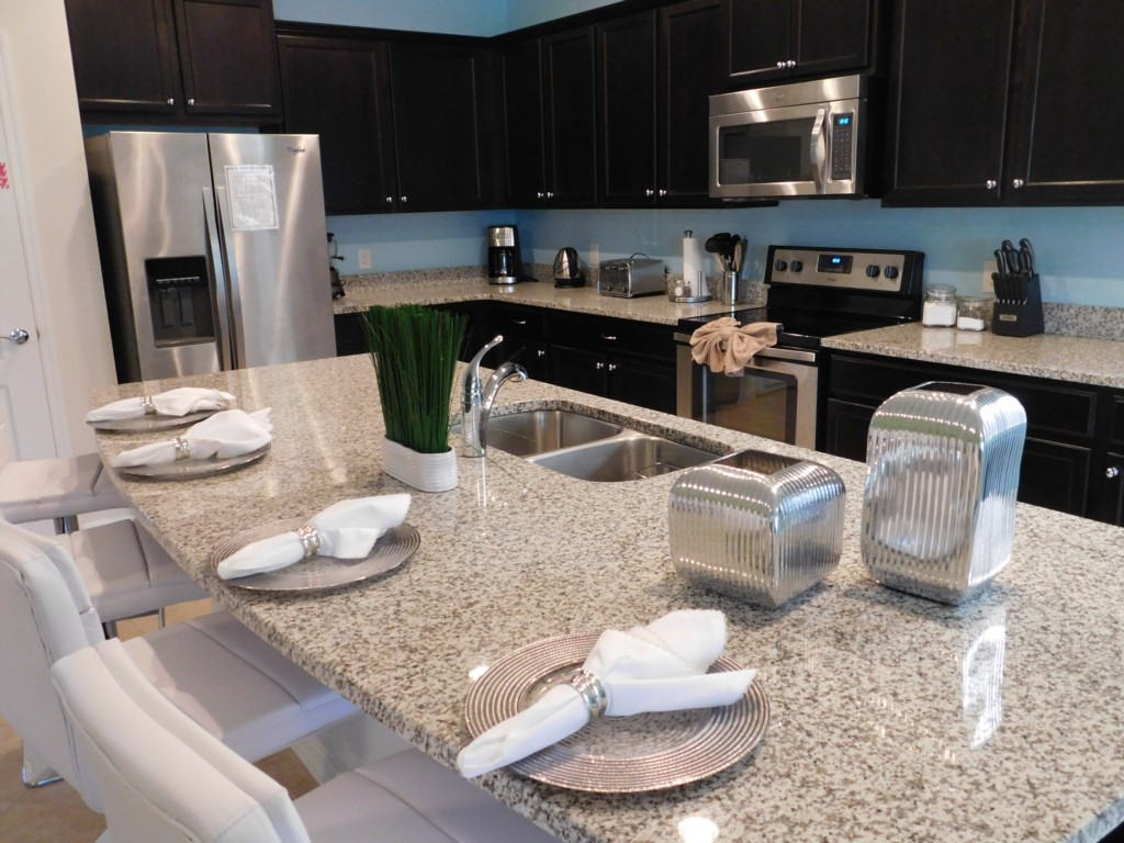 This stunning 2 storey private pool home has two living areas as well a breakfast island bar and dining area, along with a fully equipped kitchen including all necessary appliances and kitchenware to make you feel right at home. There are 8 inviting bedrooms as well as 6 full bathrooms, a game room and 10 TVs, throughout, with standard digital cable that has over 70 channels. While you are lounging comfortably should you wish to watch movies there is also a Blu-ray player in the living room. Your very spacious home sleeps 18 people or up to 20 people when utilizing the sofa bed located in the upper living area. A temperature controlled centralized cooling and heating unit is a splendid amenity for those hot summer days or cool winter nights. As you walk through the home you will find one of the master bedrooms furnished with a queen size bed and ensuite bathroom comprised of a garden tub, a stand up shower, his & her sinks and 2 walk in closets, as well as one guest room with a queen size bed. On the second floor you will find two more master bedrooms, one furnished with a king size bed and ensuite bathroom comprised of a his & her sink and bathtub/shower combo. The other master with a queen size bed and ensuite bathroom comprised of a his & her sink and a stand up shower. There are also four more guest rooms with another queen size bed in one room, 2 twin beds in two rooms and finally one room with a bunk bed of 2 full size beds.