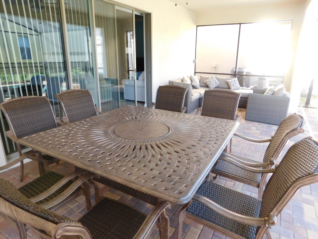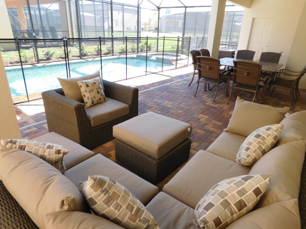 You can always enjoy a delectable meal on the pool deck or simply unwinding on a lounger next to your own gleamingly blue heatable private swimming pool and jacuzzi that is enclosed by a screened-in patio deck.