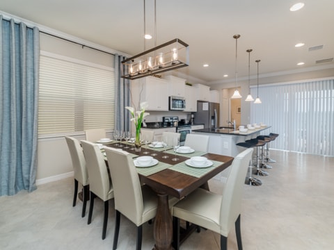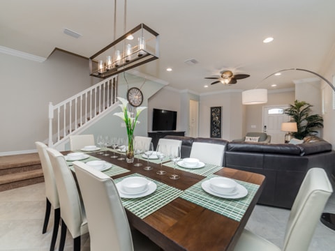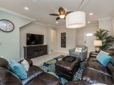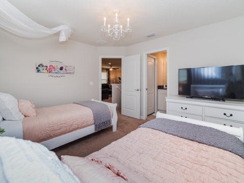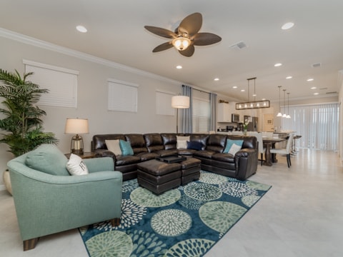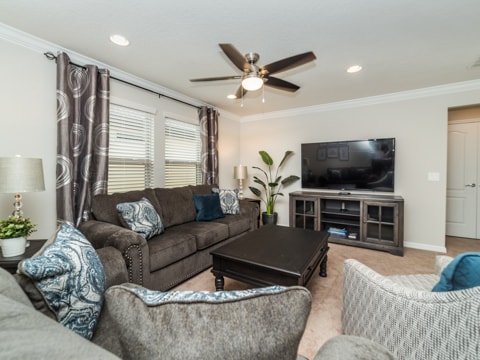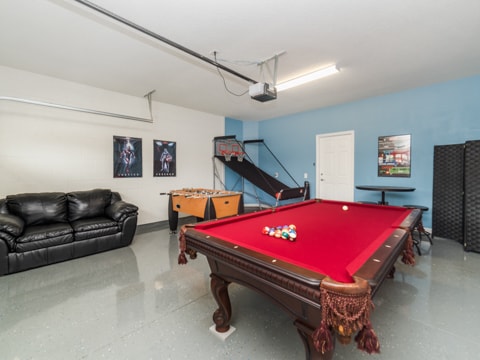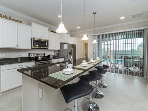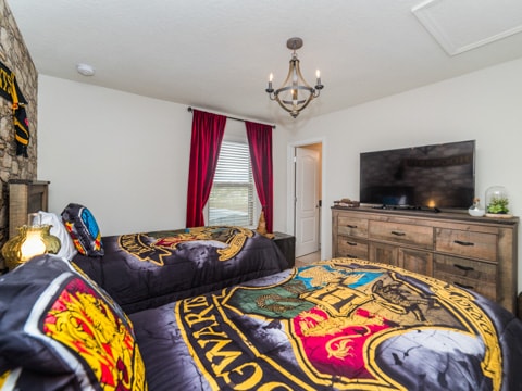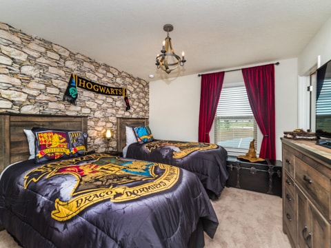 Luxury, immaculate and inviting are a few words that describe this gorgeous home located in the gated resort community of Windsor at Westside. Five bedrooms and 5 bathrooms add to the striking visual of this home. Three rooms with king beds and 2 rooms with 2 XL twins sleep up to 10 very comfortably. There is also a queen sleeper in the family room for additional sleeping. The Harry Potter Themed room is especially fun for the “wizards” in your family. The living room and loft are perfectly placed around 65” flat screens. The living room features leather couches and accents of brown and teal. The loft has cozy seating and provides the perfect place to catch up on your favorite movies. The kitchen here is a chef’s paradise. Granite countertops, stainless steel appliances and white cabinetry makeup the best spot to cook up gourmet meals or quick snacks. Enjoy all the fruits of your labors at the breakfast bar or 8 person dining room table - each provide a perfect spot to catch up and enjoy meals together. This home also comes with an amazing game room. Get together for a family game night and play billiards, foosball and more. Head out back to the picturesque pool and spa where you can spend all day in the Florida sun. Last but not least, be sure to stop by the Windsor at Westside clubhouse, complete with another gameroom, giant pool and so much more. Book your stay today!
