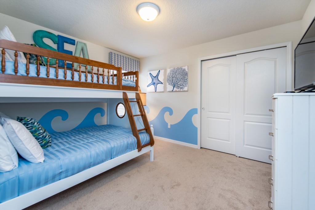 This home has 4 king bedrooms, 2 queen bedroom, 2 Rooms with twin beds which are themed All with flat screen TV's and plenty storage space.