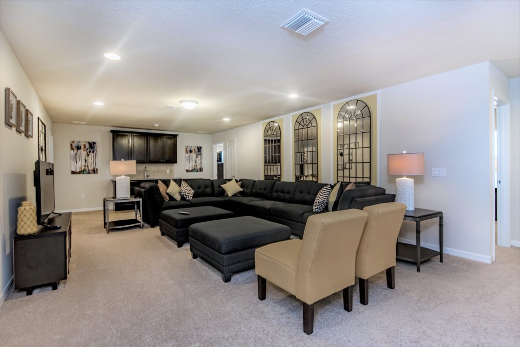 We invite you to enjoy our wonderful home on your next trip to Orlando. Absolutely perfect for multi-family groups, or golf groups, this property features all the comforts of home and more! Book your vacation now at this beautiful home with pool and spa located in the gorgeous Windsor at Wesside Gate Resort. Plus as our guest you get to enjoy all the amenities of the resort such as the lazy river, splash pool for the kids, 2 other large pools, tennis courts, fully equipped exercise room, on site cinema, arcade games, and family restaurant.