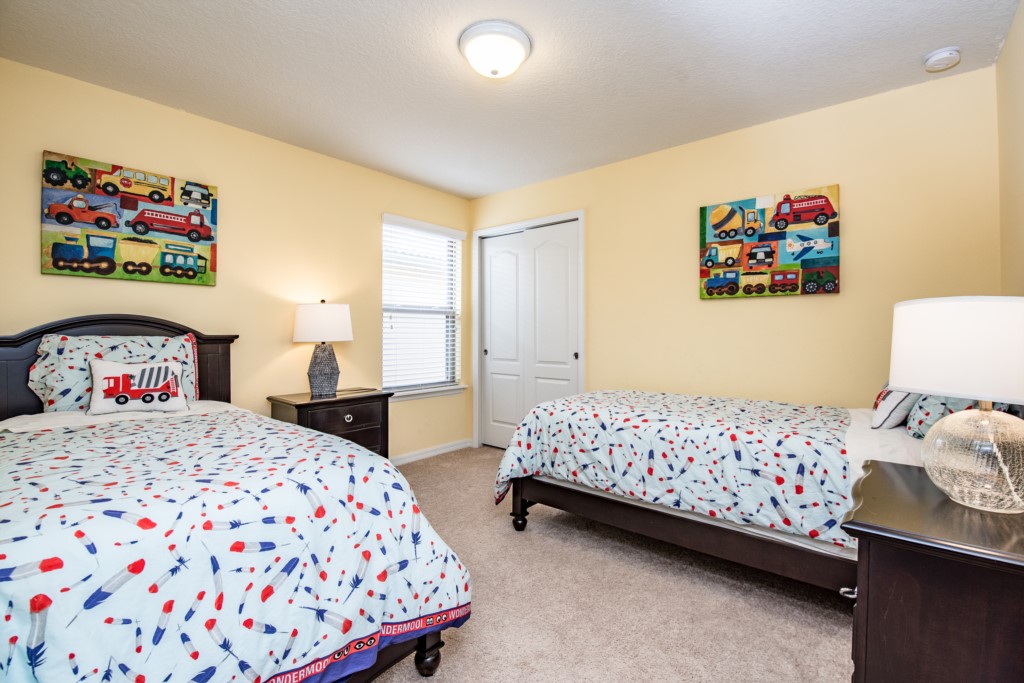 Located just minutes from Disney, this beautiful two-story 8-bedroom, 6-bathroom Windsor Westside vacation home has all the comforts of home and everything you need for your vacation. Enjoy the home’s convenient location to Disney attractions and its luxury features and amenities including 3 bedroom/bathroom suites, 2 themed bedrooms – Transportation and Pink Parisian – flat-screen TVs and DVD players in every bedroom, multiple suites, and a fully loaded game room.