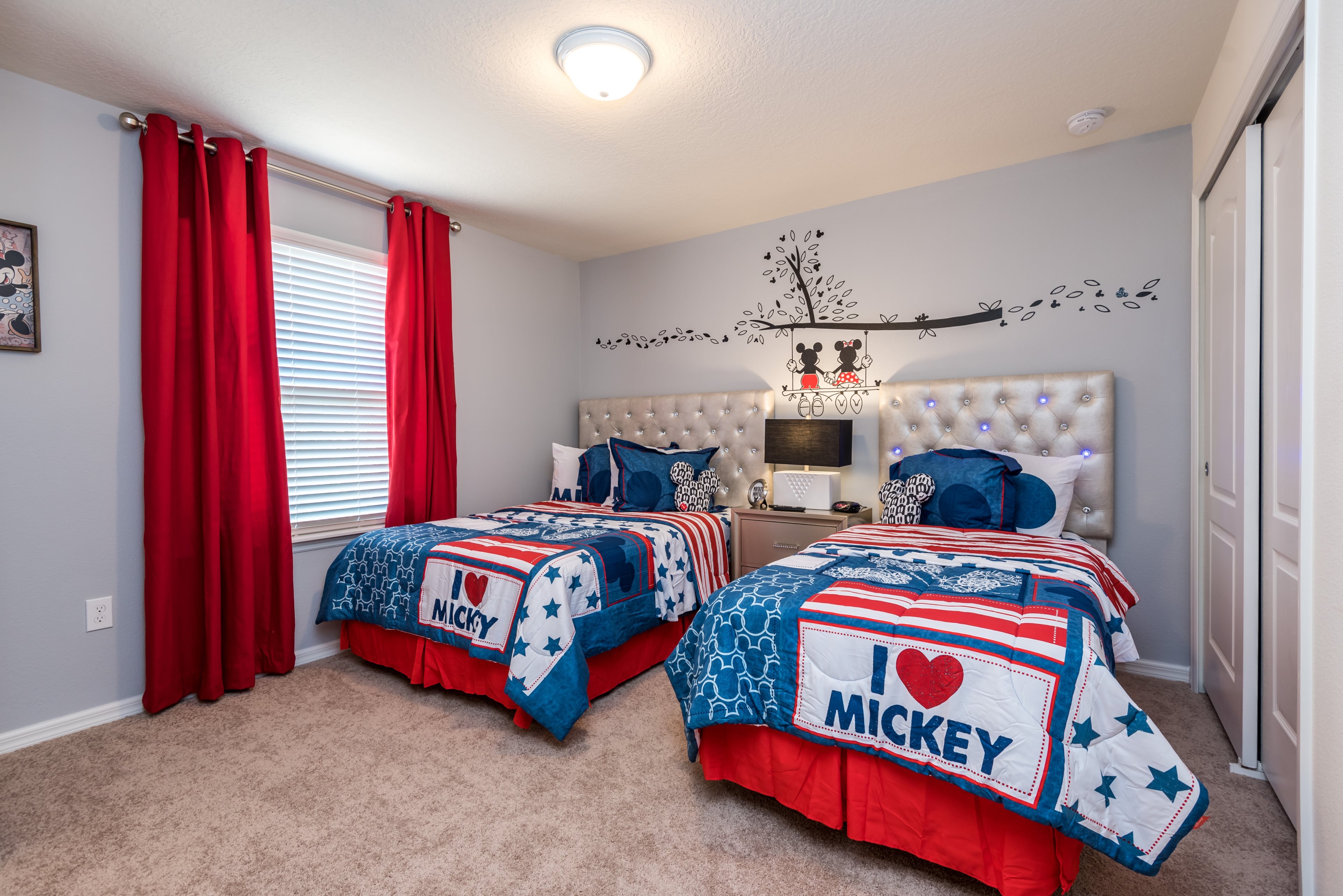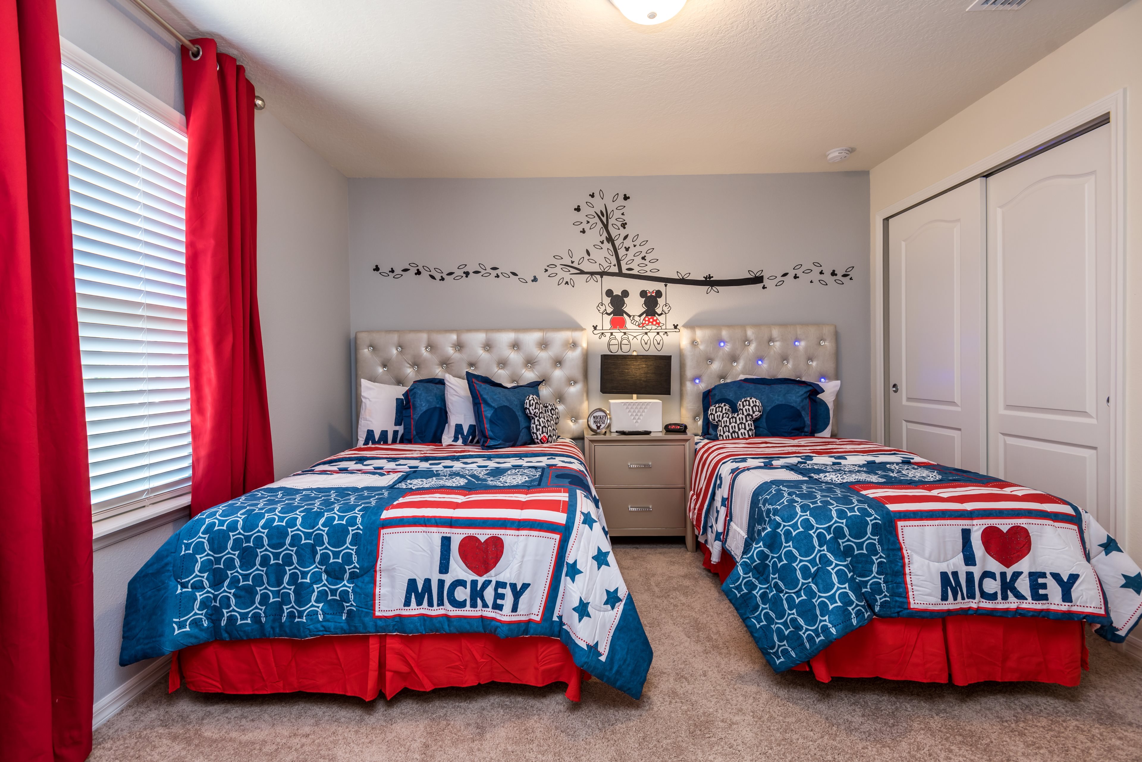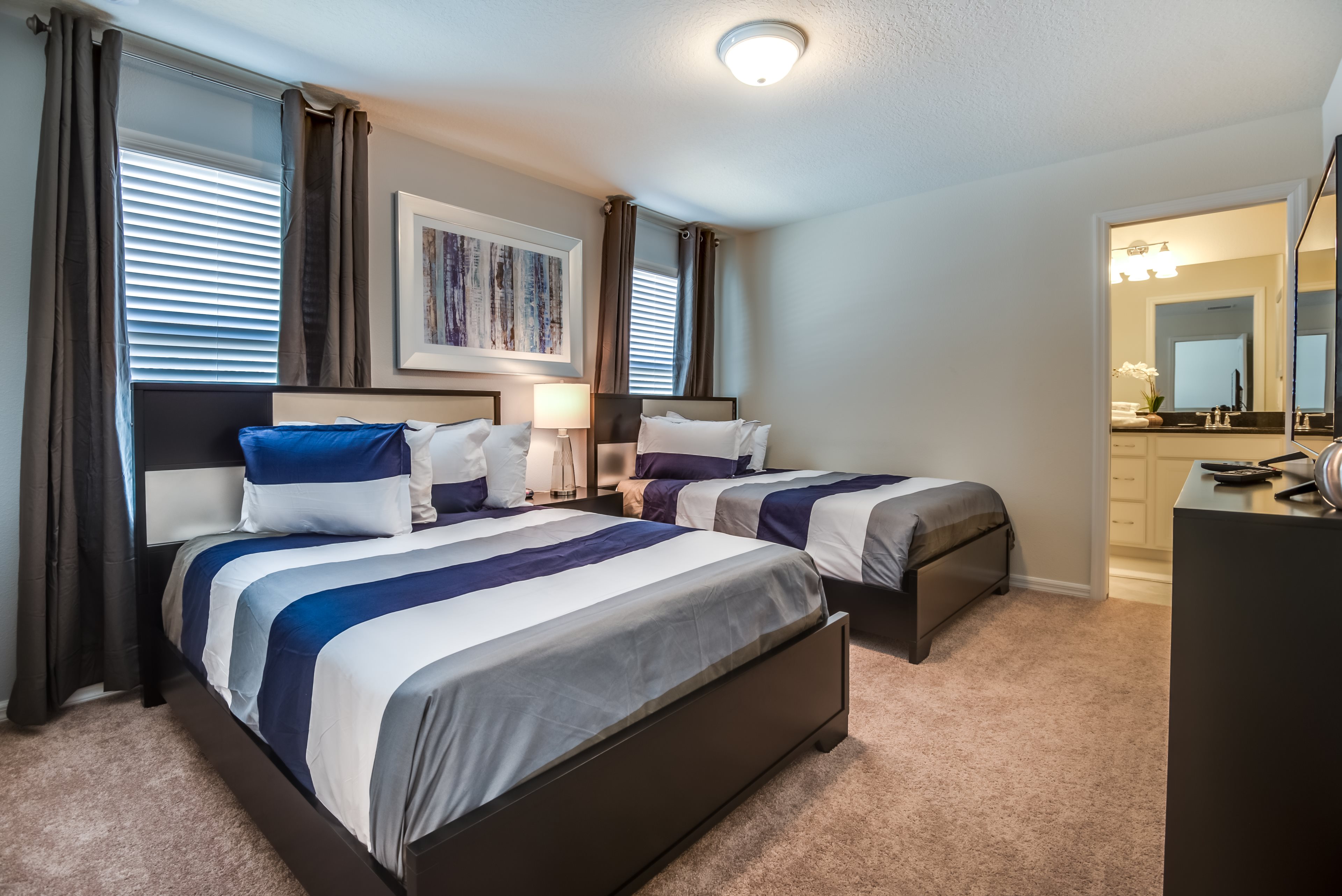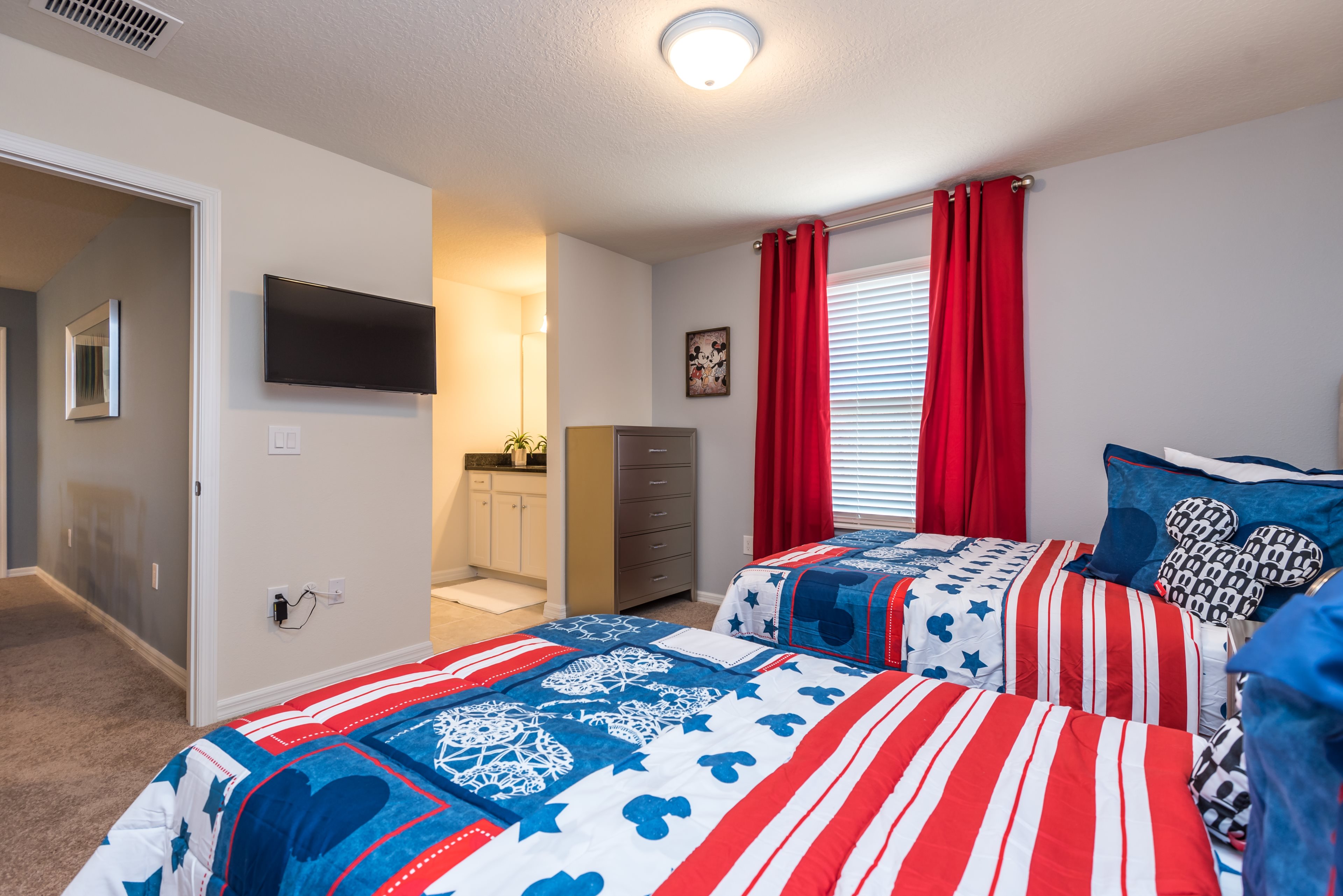 Twin Bedroom (Bedroom 7) with a ‘Secret Passage’ to ‘Frozen’ Bedroom and Jack ‘n’ Jill bathroom comprising of a toilet, shower, double vanity units and sinks.