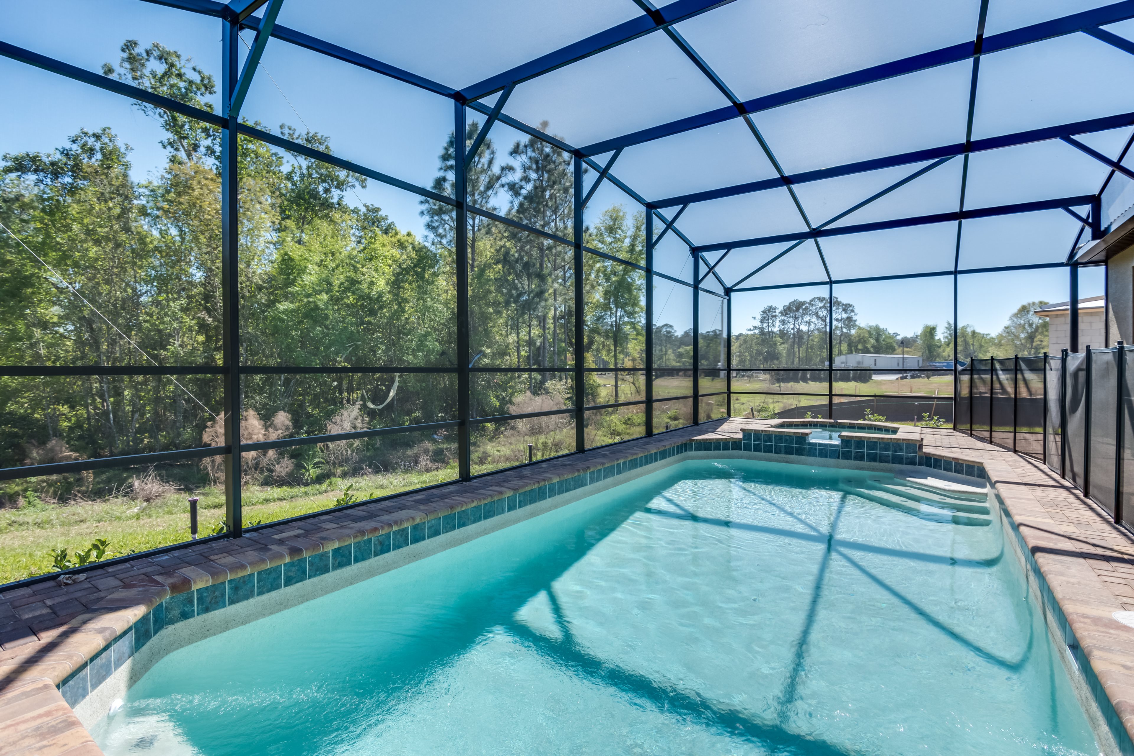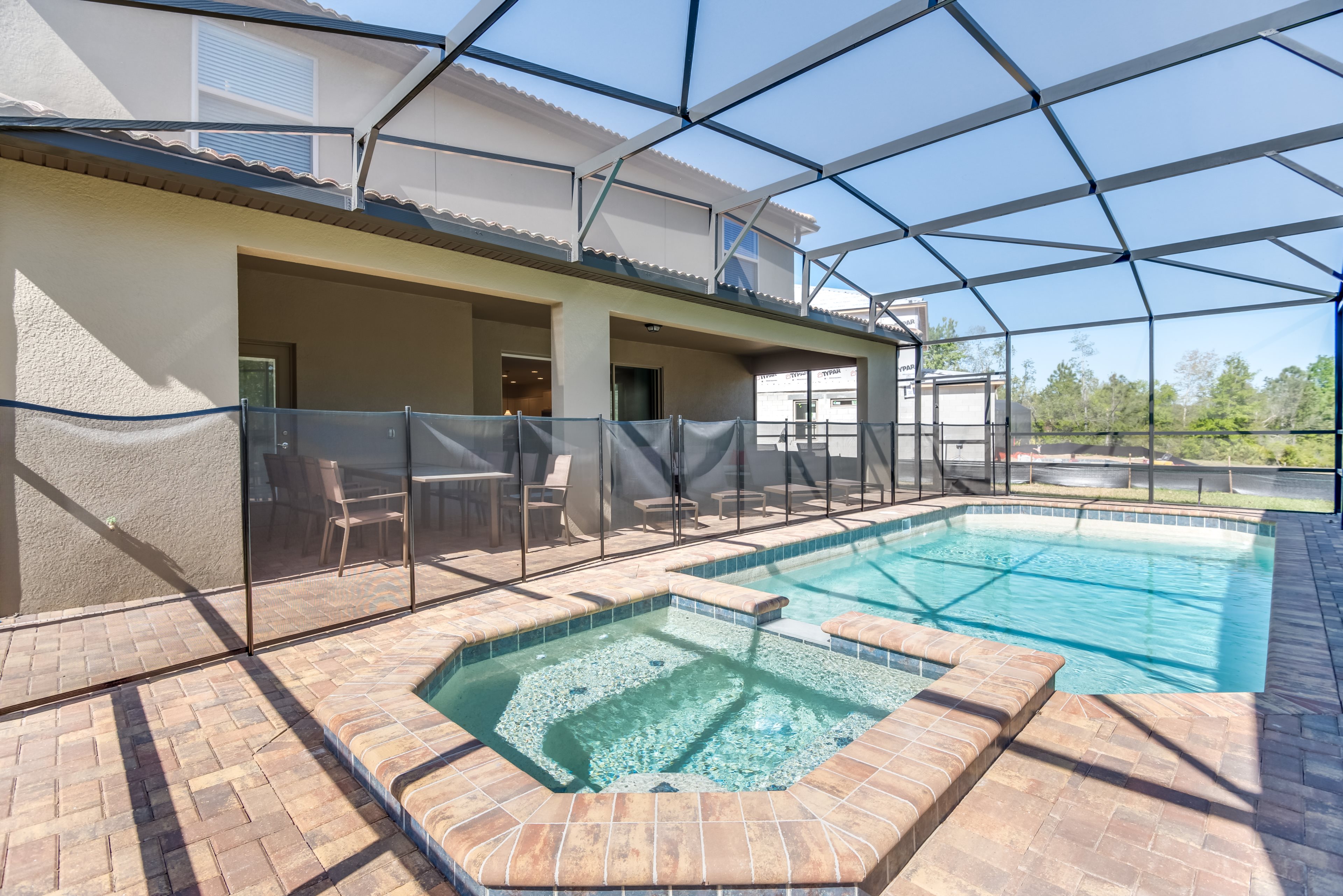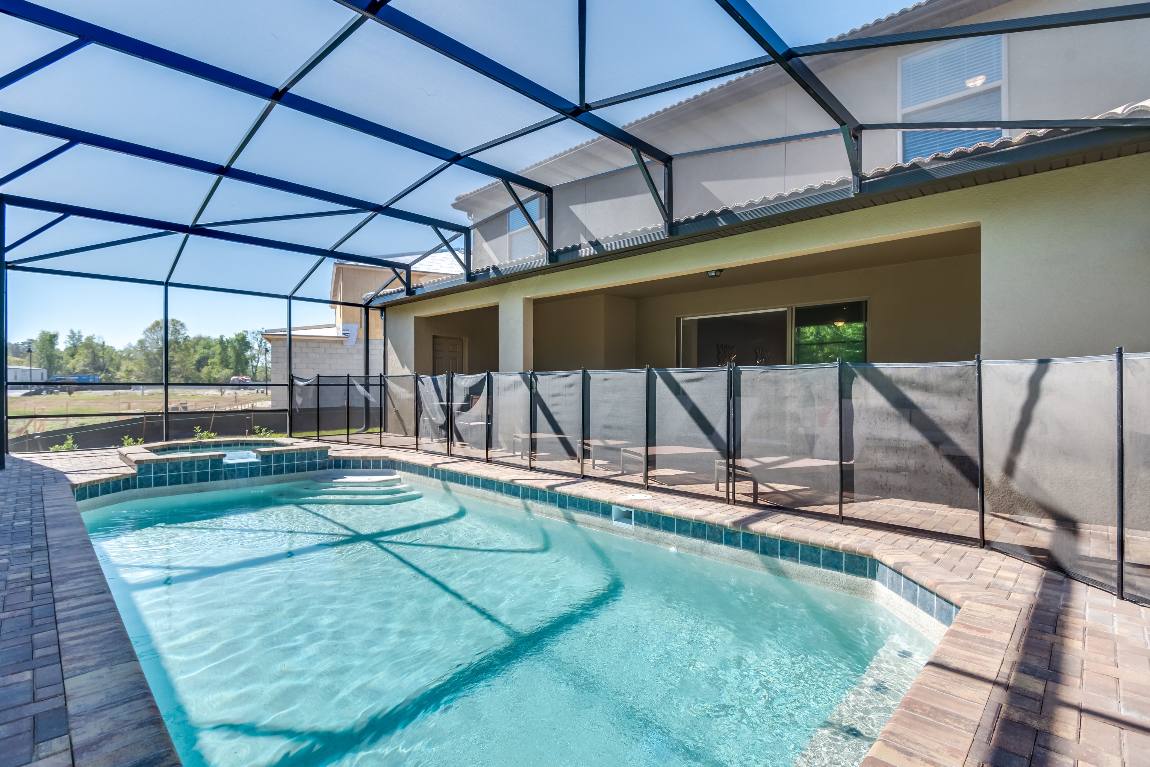 The Swimming Pool & Spa: the pool itself is 20’ x 13’ with the spa set in the ground directly beside. For safety, there’s a Child Barrier Protection Fence which is situated between the pool and the covered lanai, just in case; it’s a light frame with transparent mesh screens so don’t think it’s going to block out the light or spoil your view, it doesn’t ?