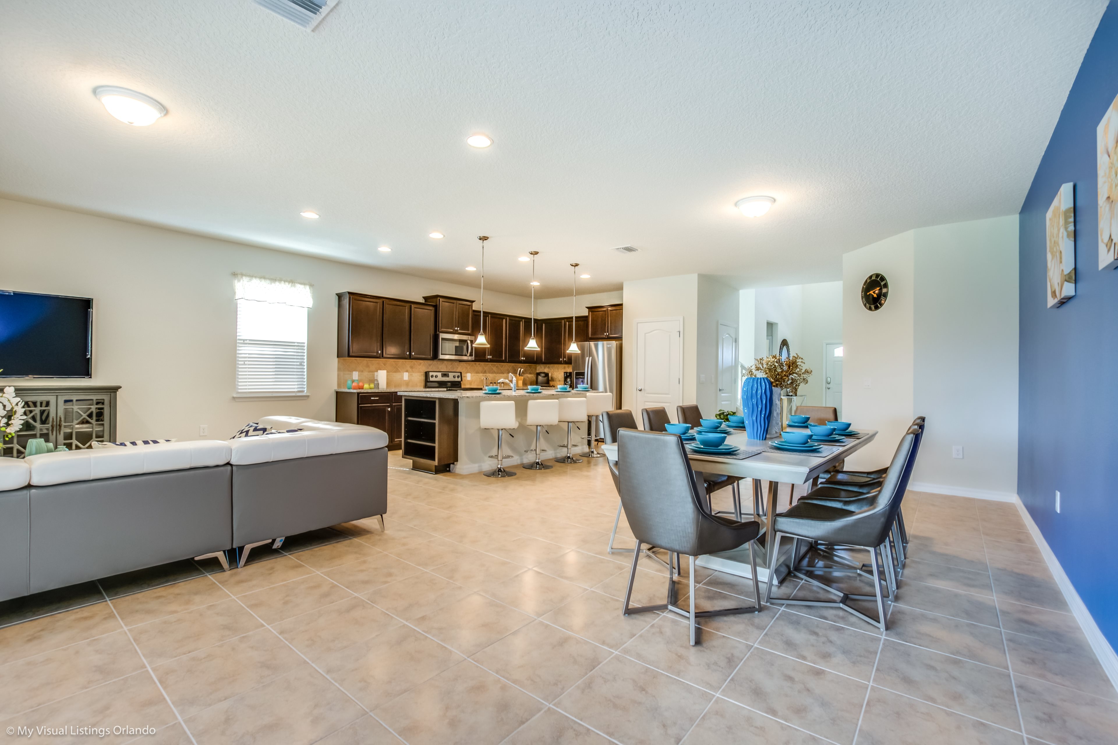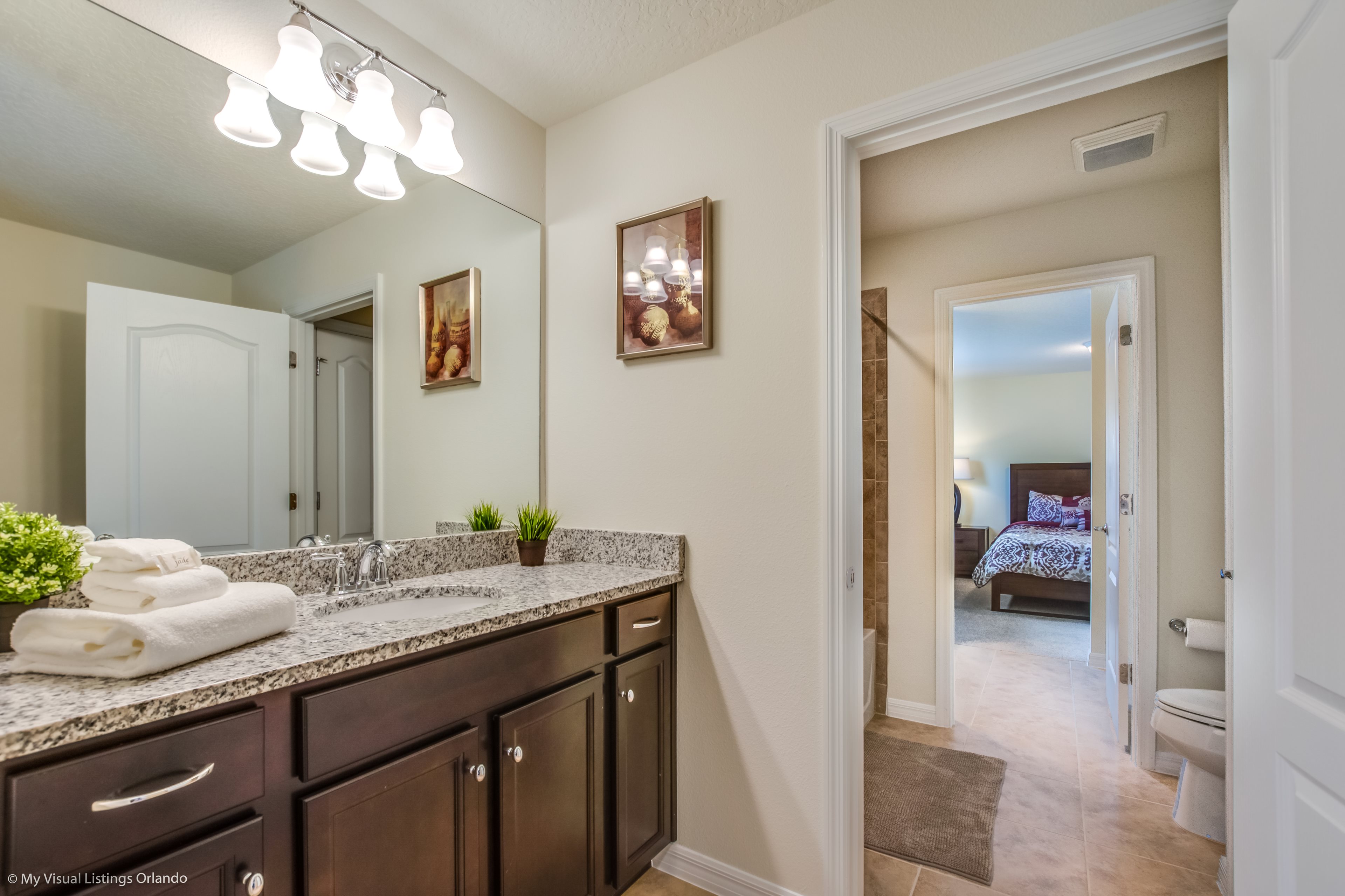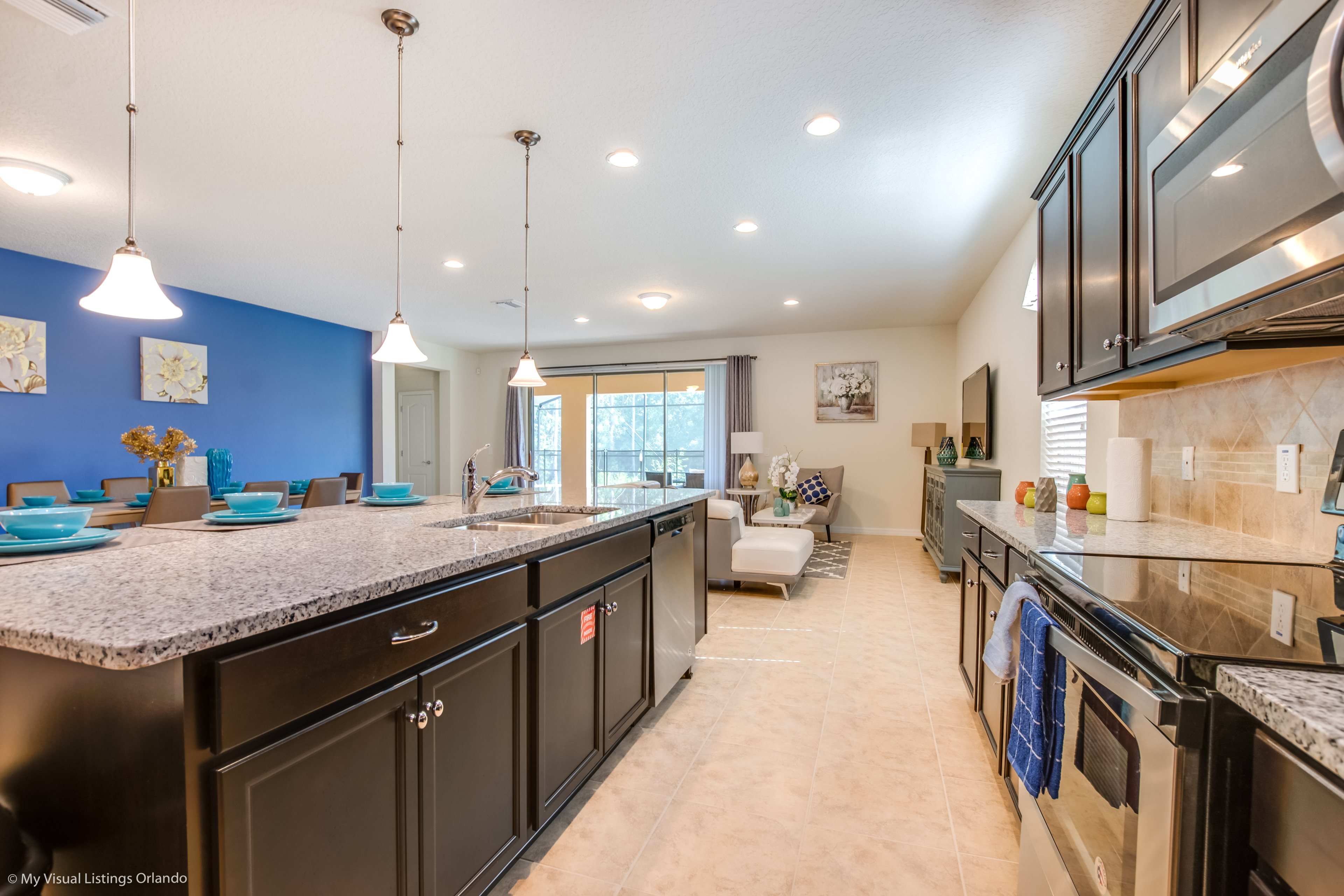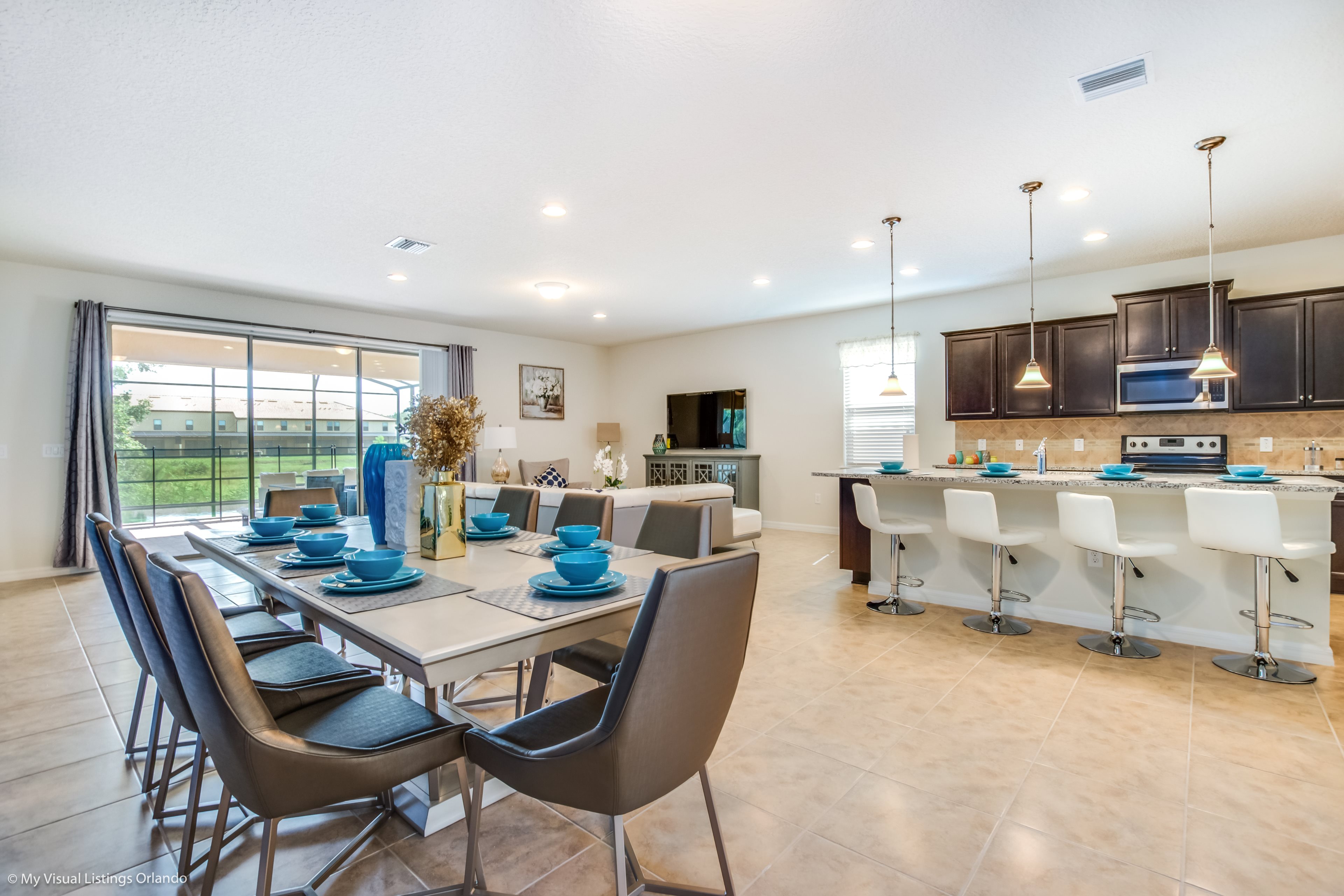 We invite you to enjoy our wonderful home on your next trip to Orlando. Absolutely perfect for multi-family groups, or golf groups, this property features all the comforts of home and more! Book your vacation now at this beautiful home with pool and spa located in the gorgeous Windsor at Wesside Gate Resort. Plus as our guest you get to enjoy all the amenities of the resort such as the lazy river, splash pool for the kids, 2 other large pools, tennis courts, fully equipped exercise room, on site cinema, arcade games, and family restaurant.