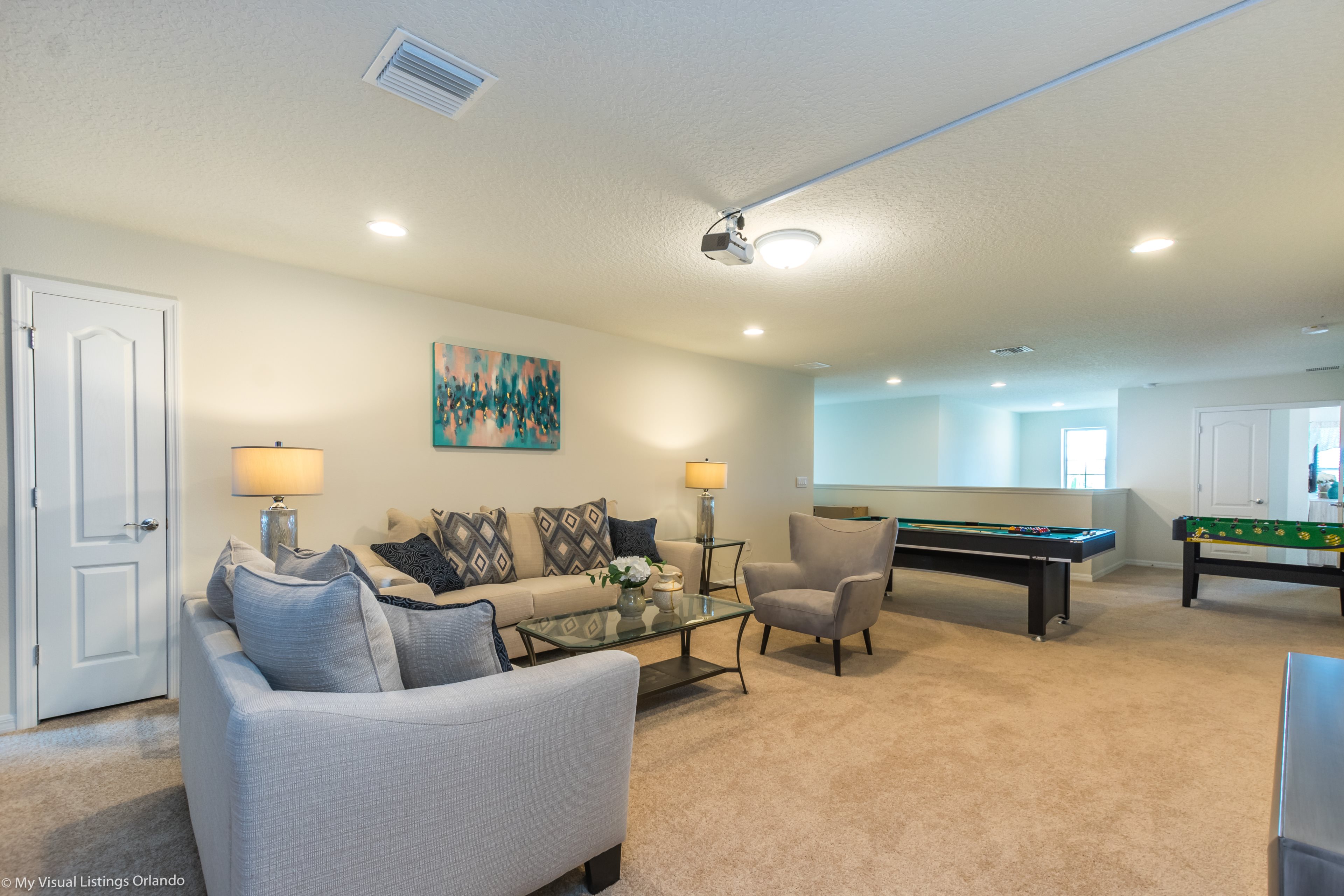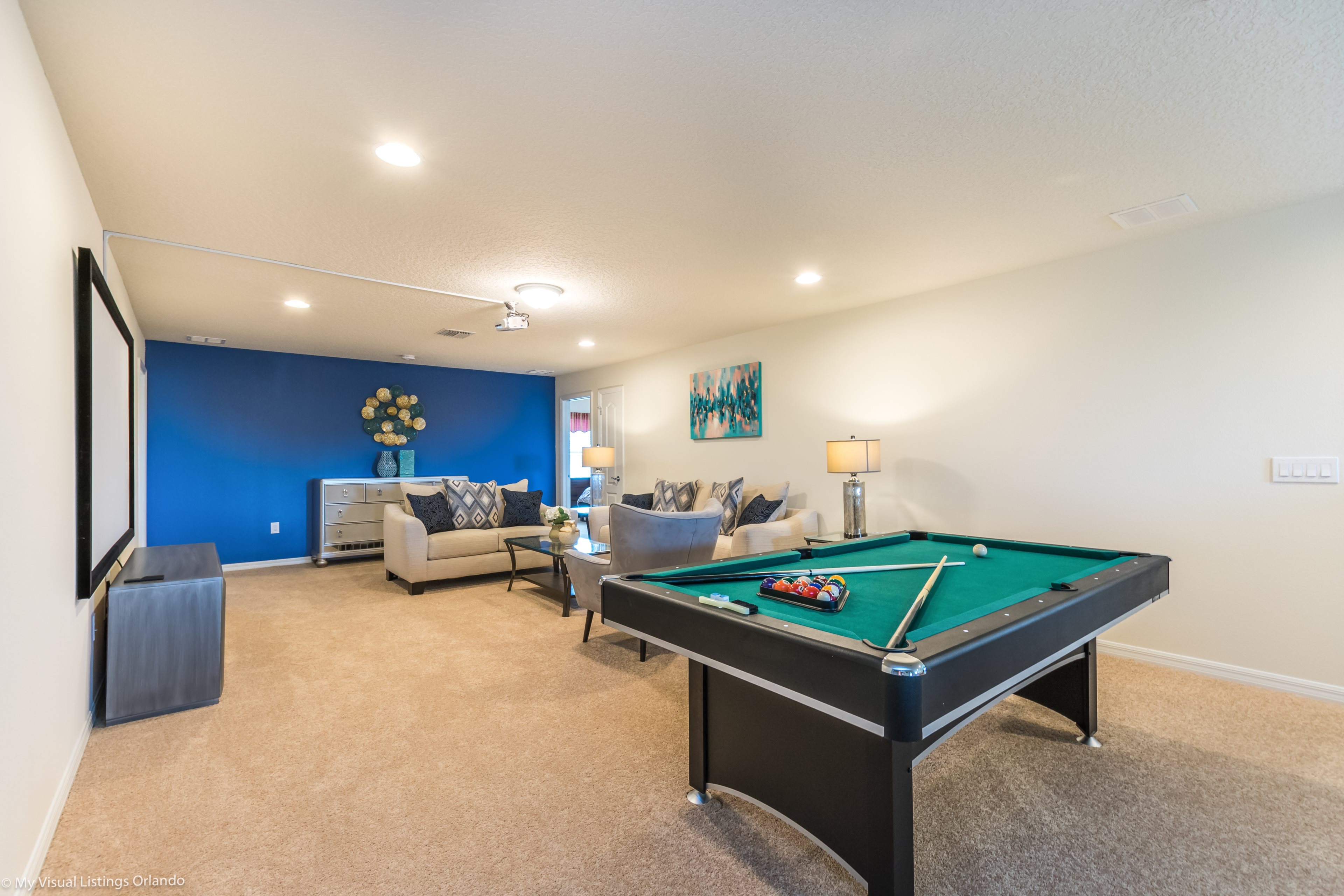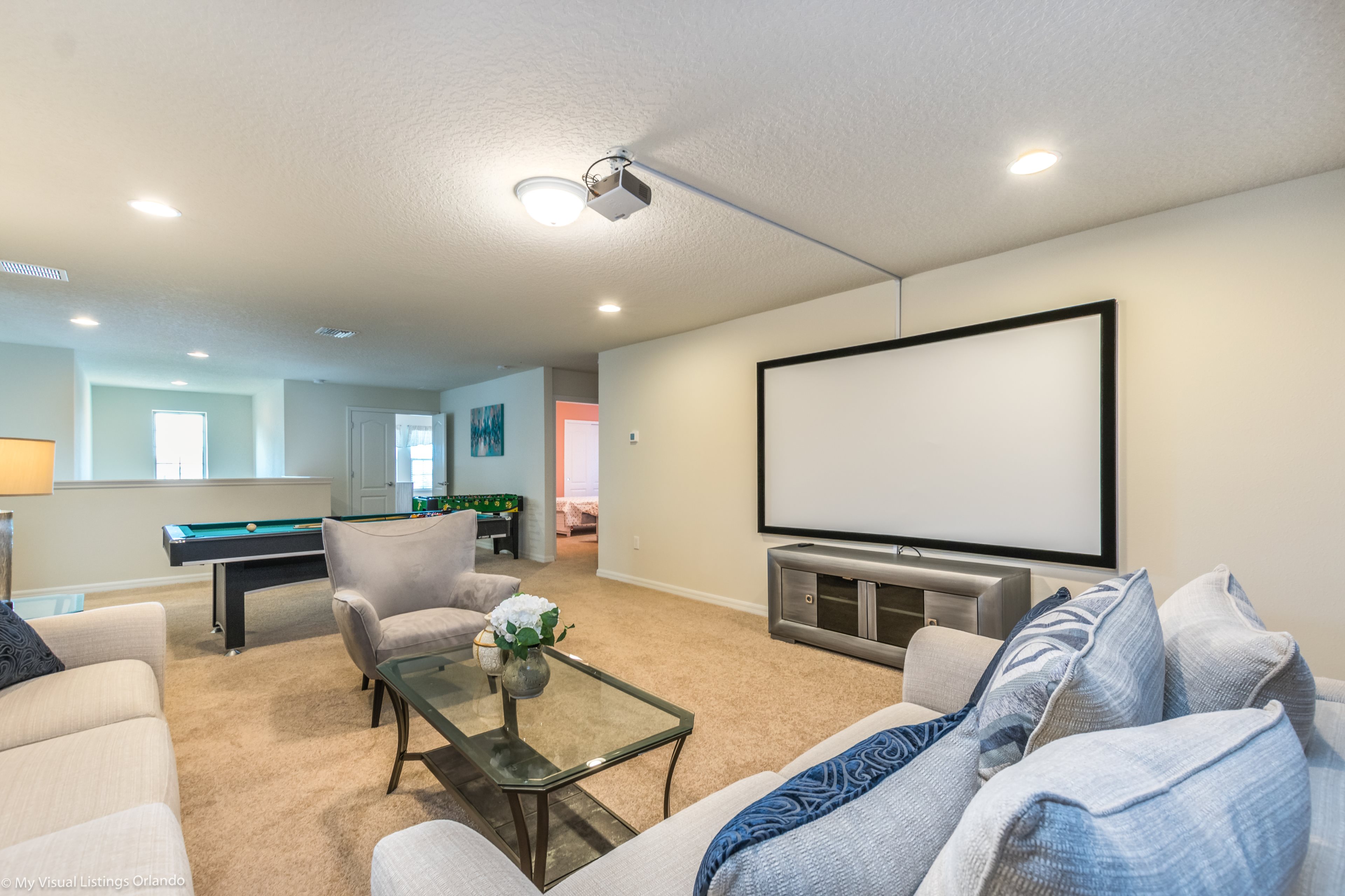 You can also enjoy a game of pool in the games room, or the adults can all watch a movie or a sports game together in the spacious lounge , while the kids watch their own show in the upstairs loft area