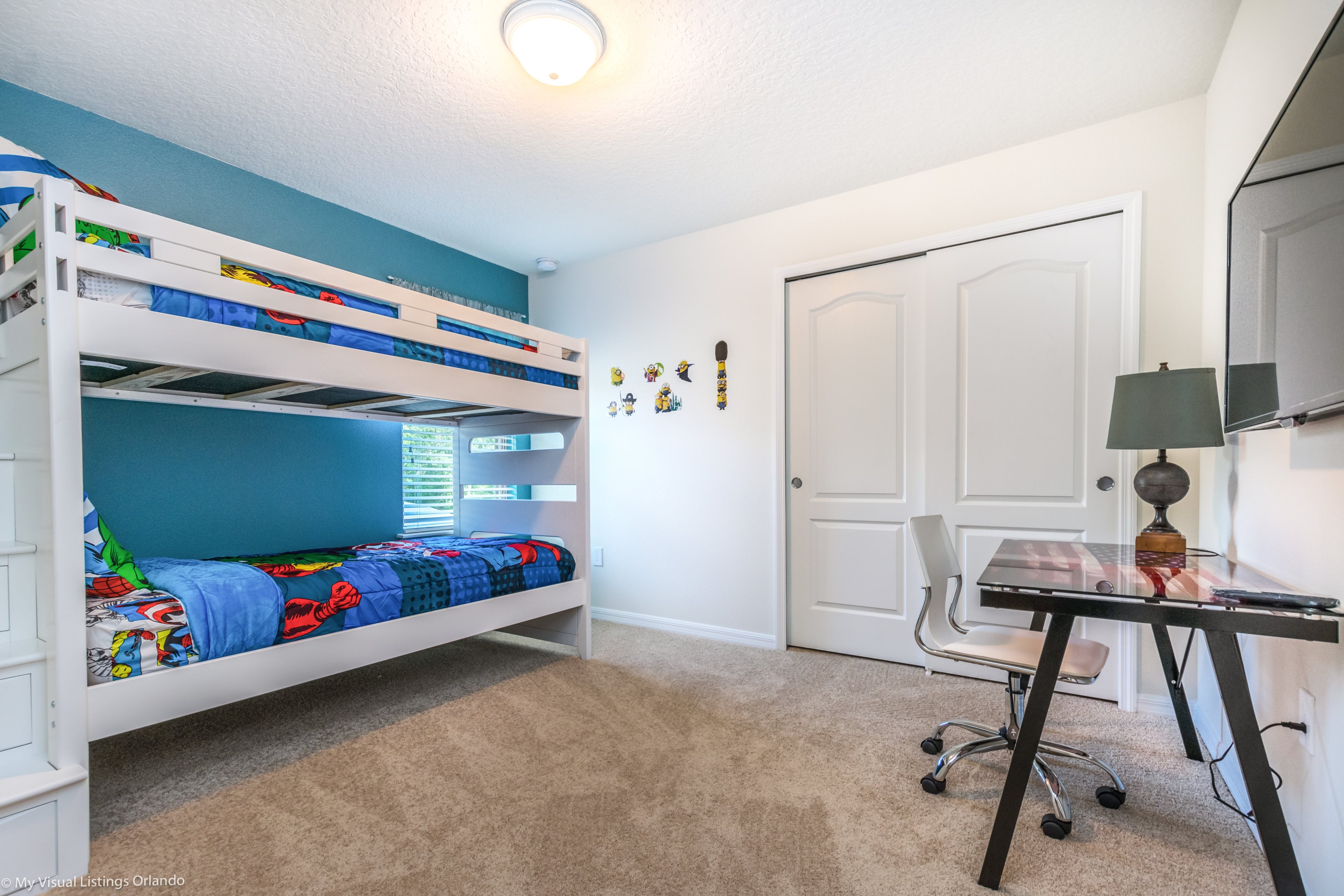 This home has 4 king bedrooms, 2 Rooms with twin beds and 2 Queen Rooms . All with flat screen TV's and plenty storage space.