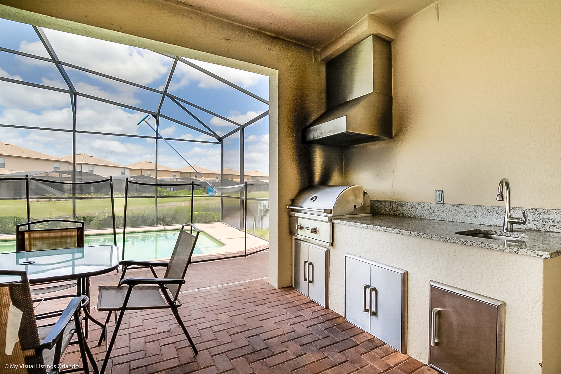 This is the one you've been looking for! Our fabulous new luxury villa with private pool and spa is situated in the gated resort community of Windsor at Westside, conveniently situated approximately 10-15 minutes from Disney and close to Golf at Champions Gate. Up to 18 people can enjoy their dream vacation in our very special 9 Bedroom, 6 Bath home. Windsor at Westside is sure to be a much sought-after location, with its fabulous resort pool & club house. Our home enjoys lovely open views over water, where birds can often be seen swimming or enjoying the sun. Sit in our super comfy furniture on the private pool deck area and enjoy the wonderful sunsets.