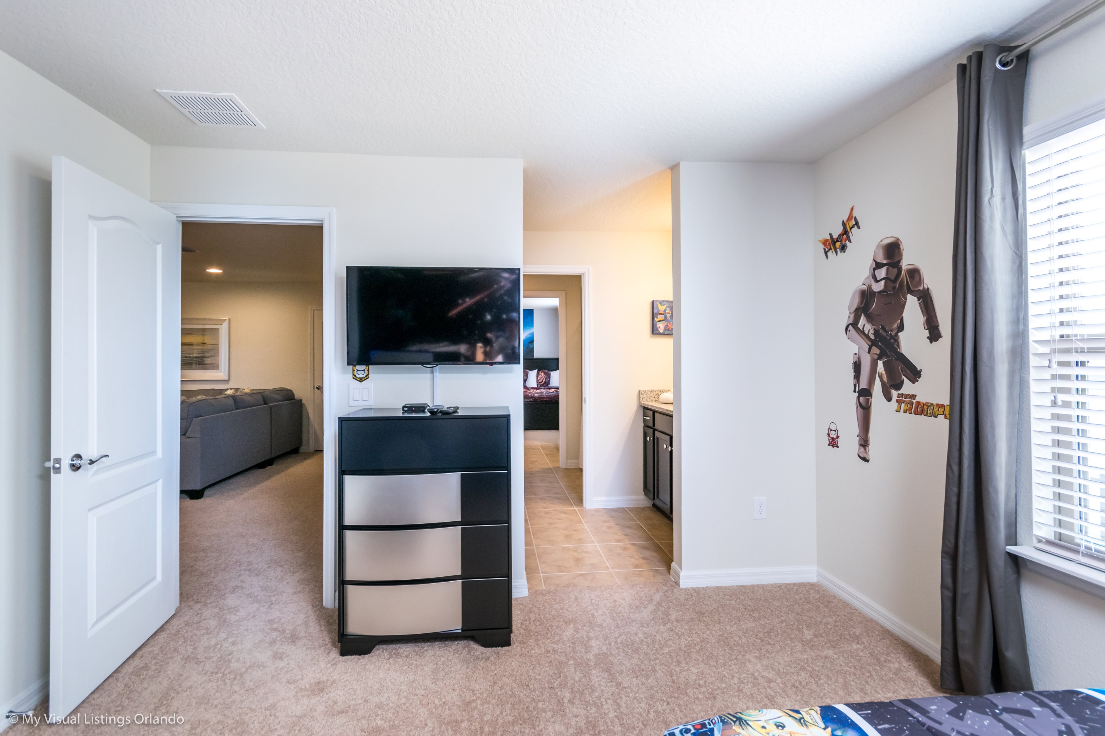 Twin Bedroom (Bedroom 7) with a ‘Secret Passage’ to ‘Frozen’ Bedroom and Jack ‘n’ Jill bathroom comprising of a toilet, shower, double vanity units and sinks.