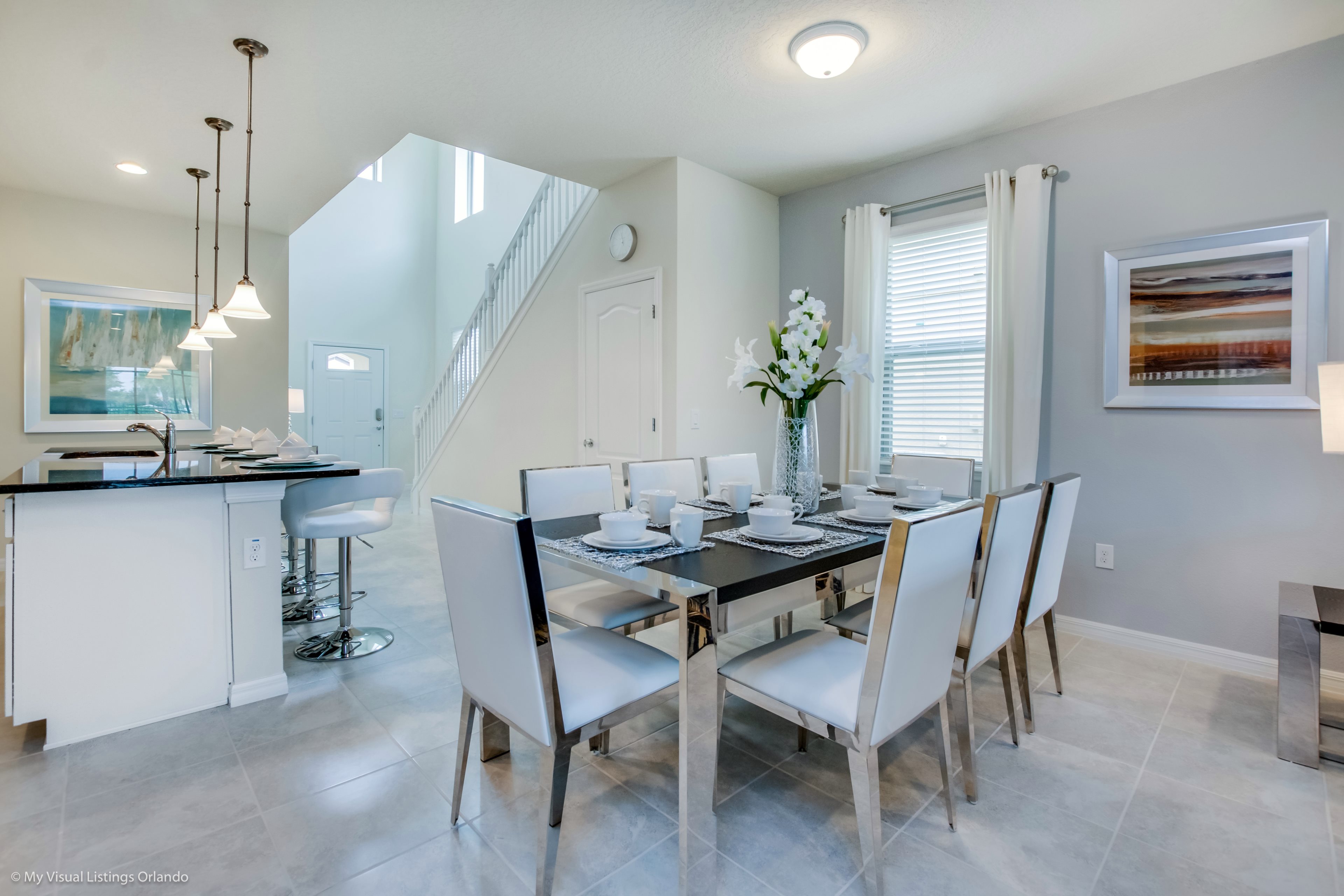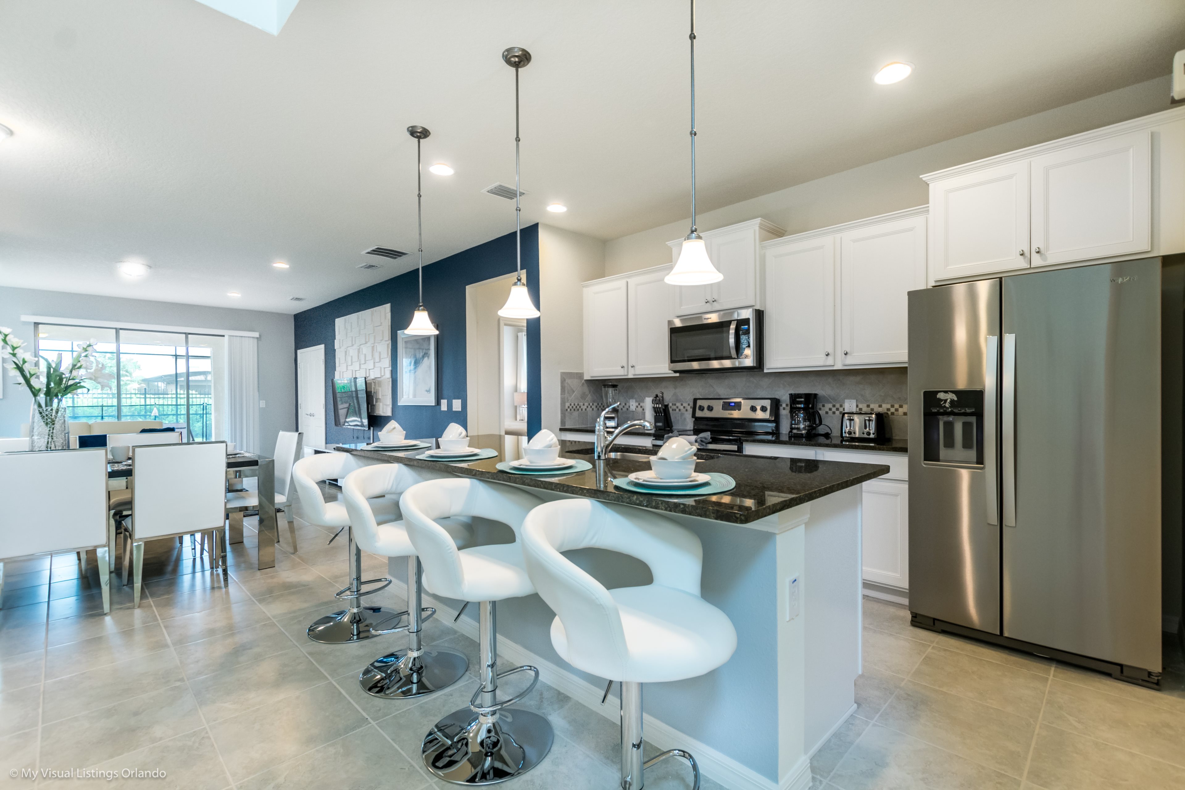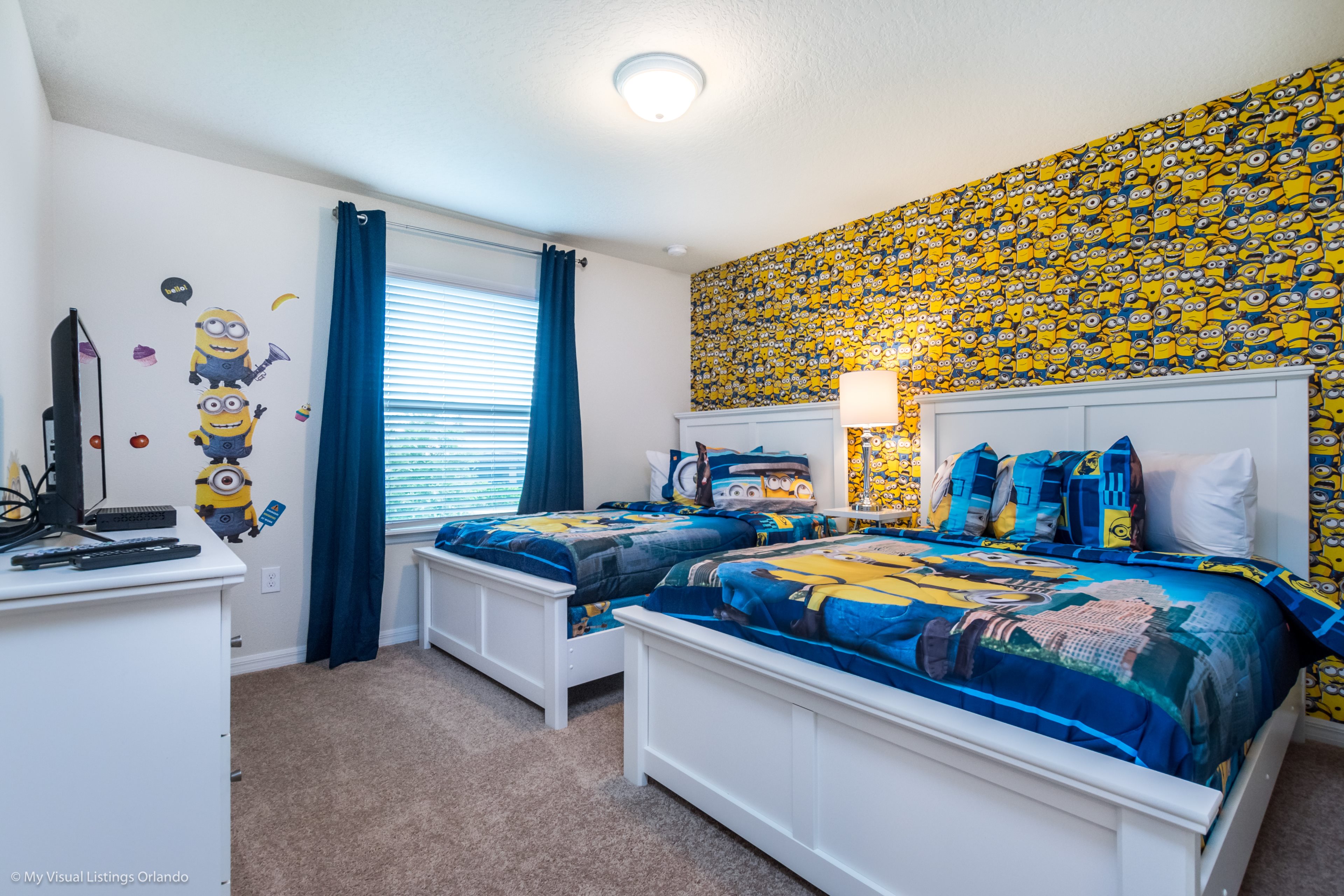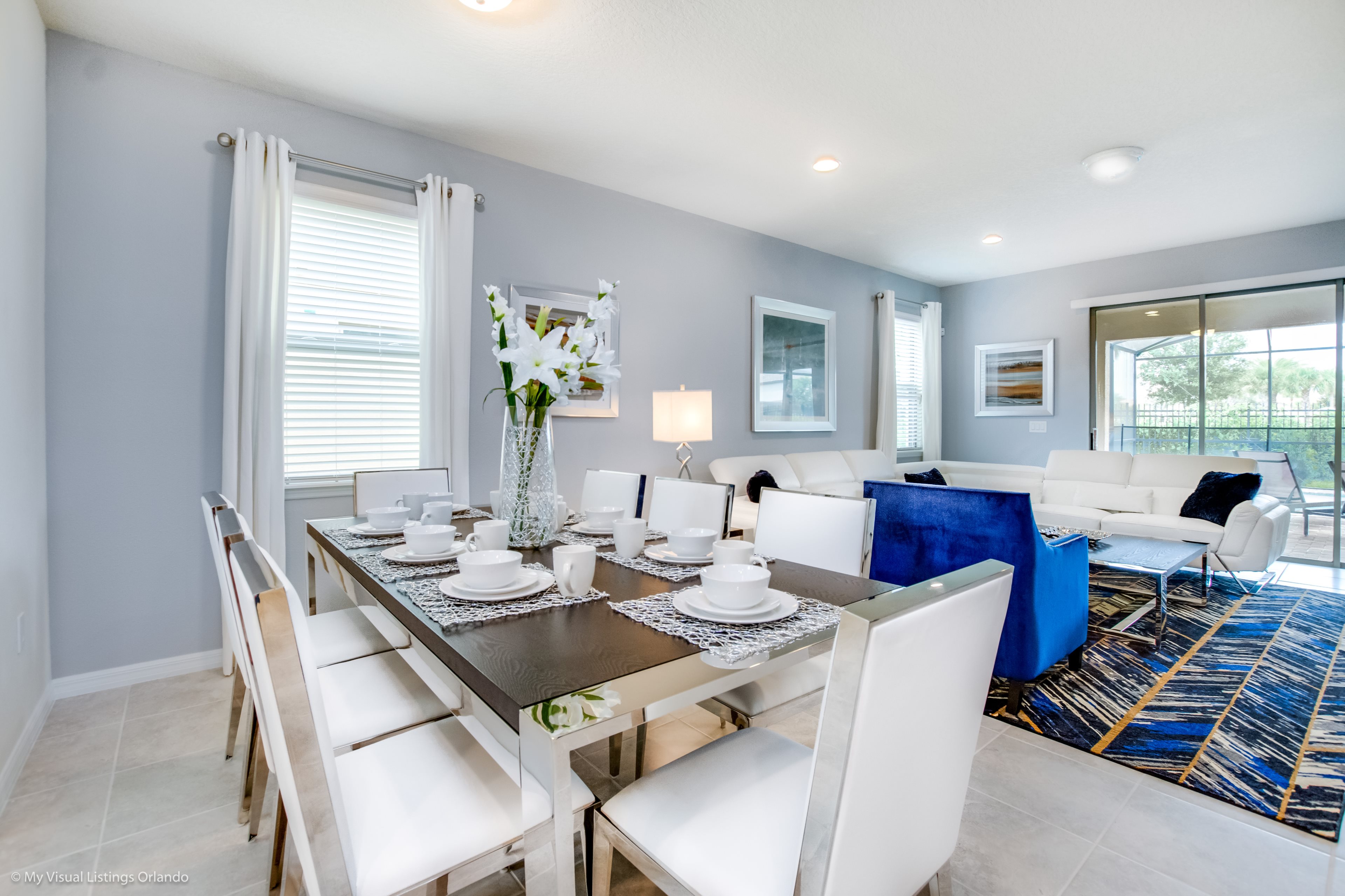 Our beautiful 6-bedroom, 4-bathroom Orlando vacation rental is situated in the sought-after Windsor at Westside community just minutes from Walt Disney World® Resort. The two-story home features two king master suites, two queen bedrooms, a full bedroom and a Star Wars-themed twin bedroom – all with smart LED TVs. For relaxation and entertainment, the home includes a screened-in private pool & spa and lost area living area with a 55” LED TV and Blu-ray player. Stay connected with complimentary high-speed Wi-Fi, cook food & snacks in the fully equipped kitchen, share meals together in the dining area, freshen up your clothes in the laundry area with a washer and dryer, and more.