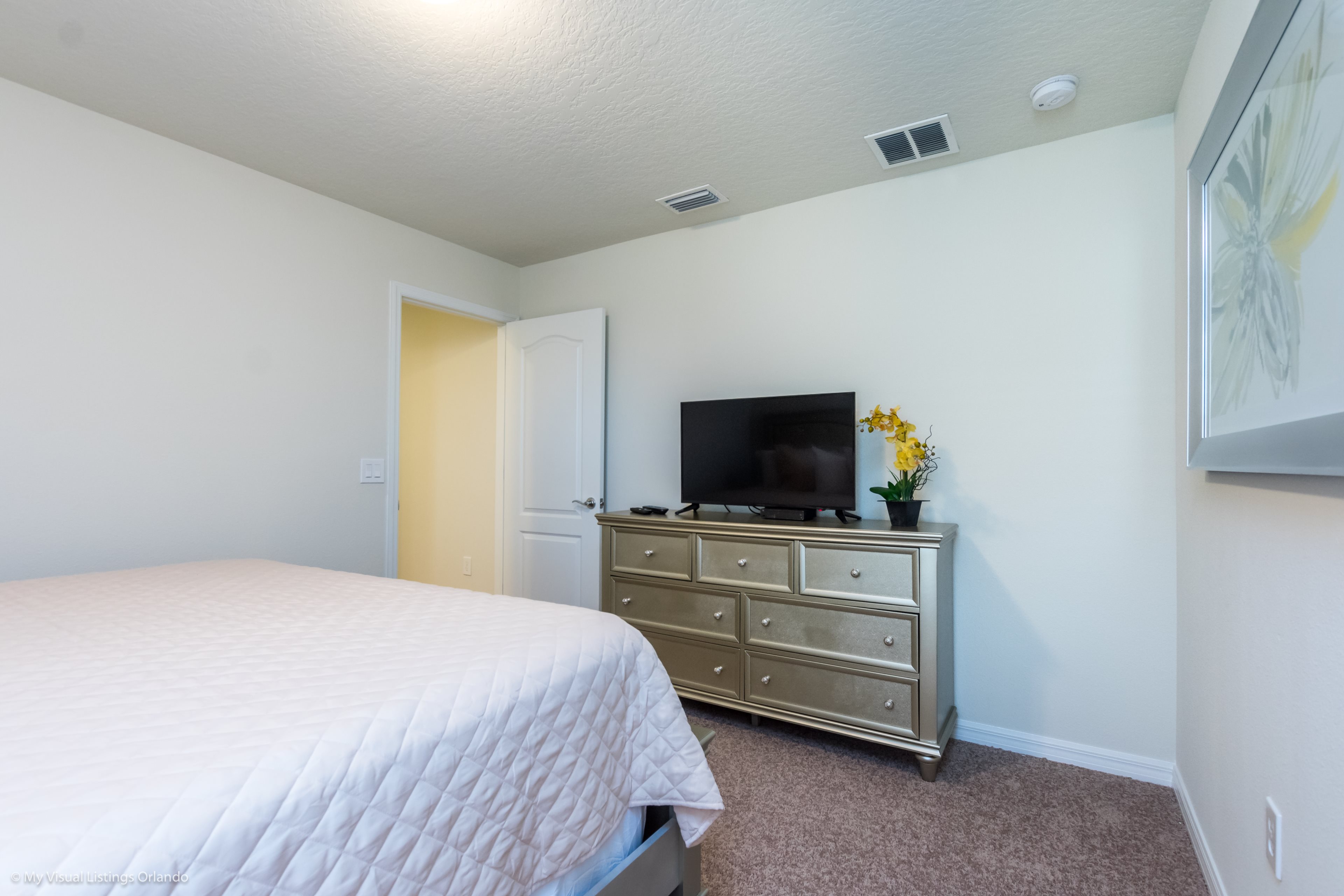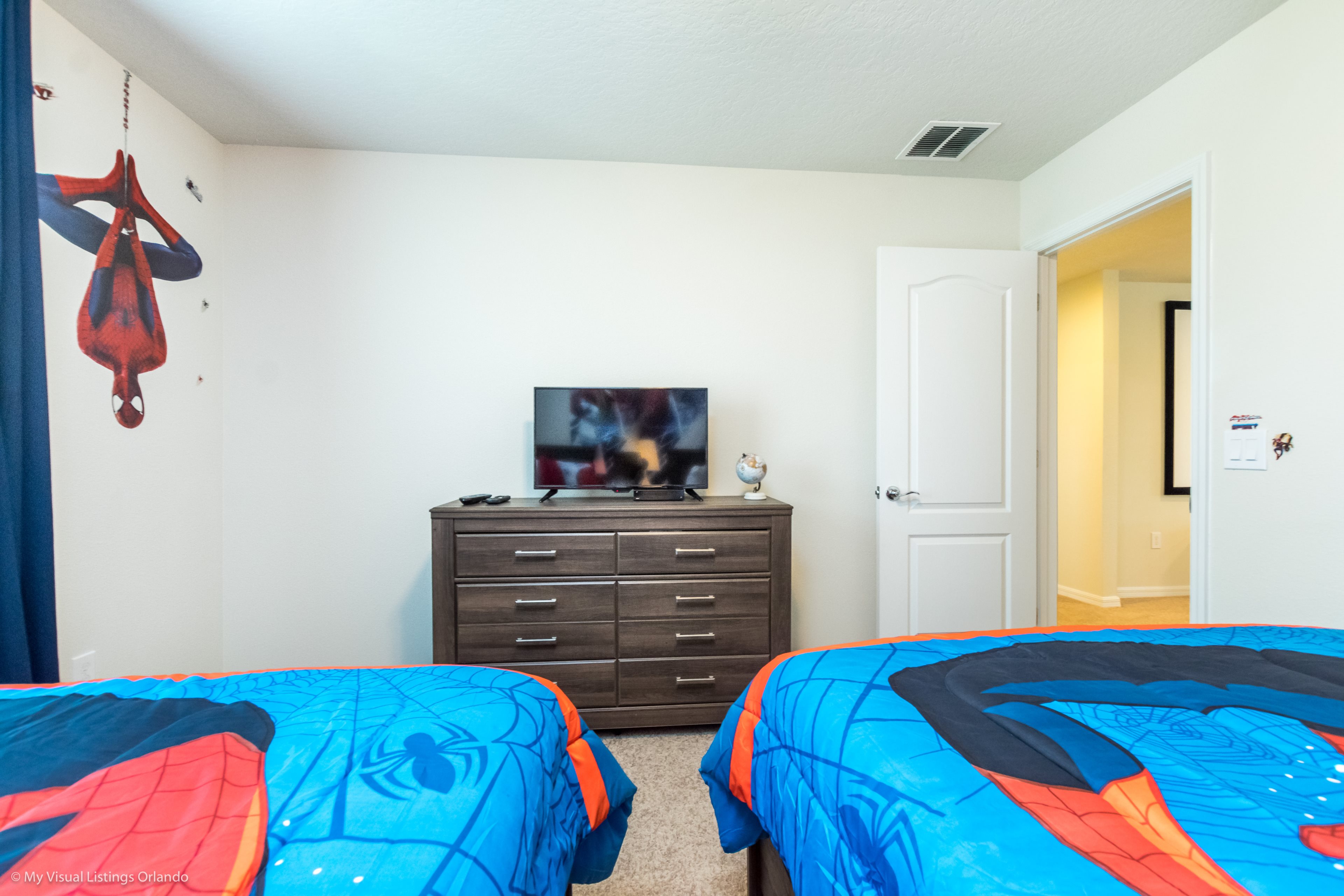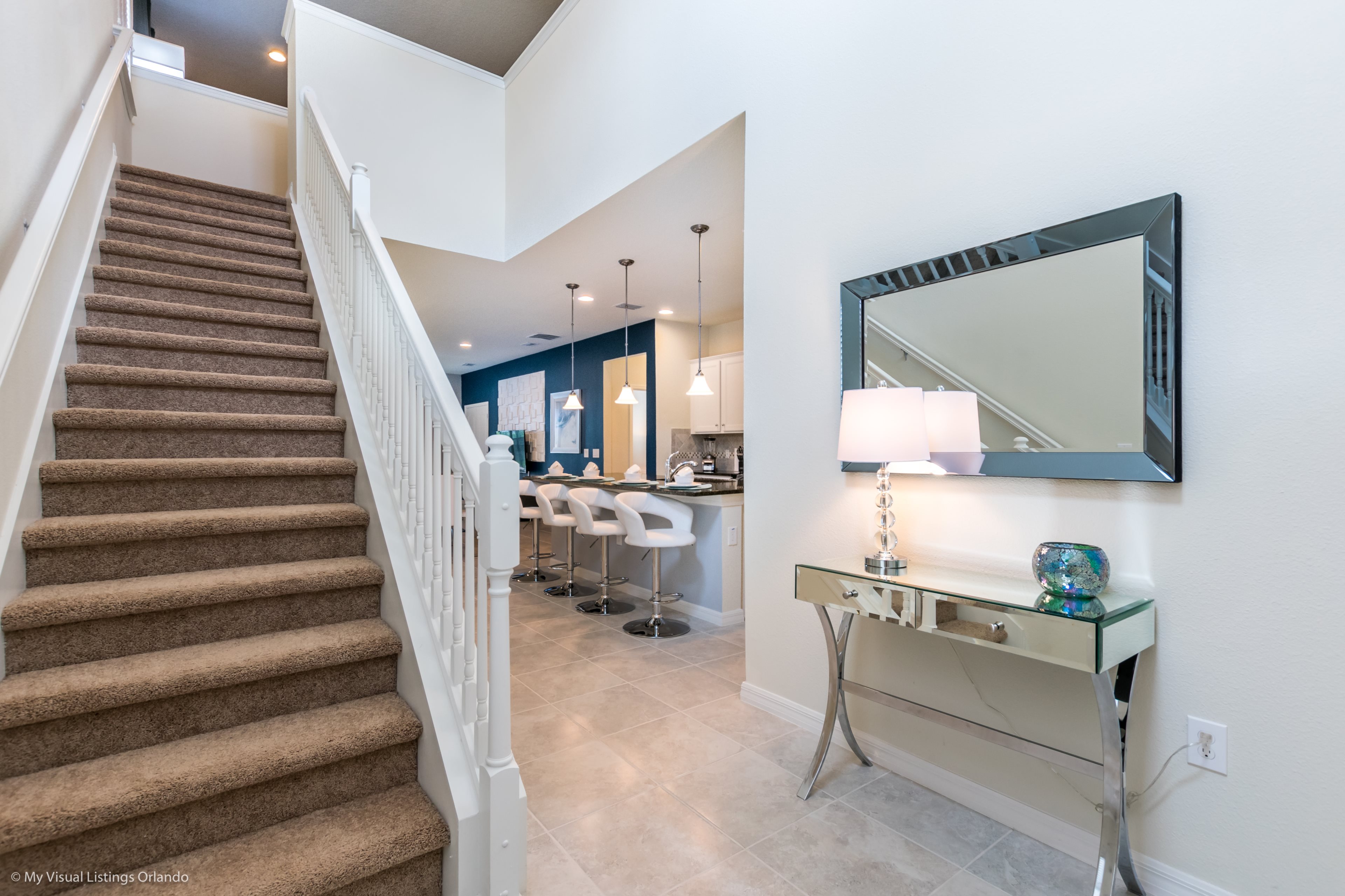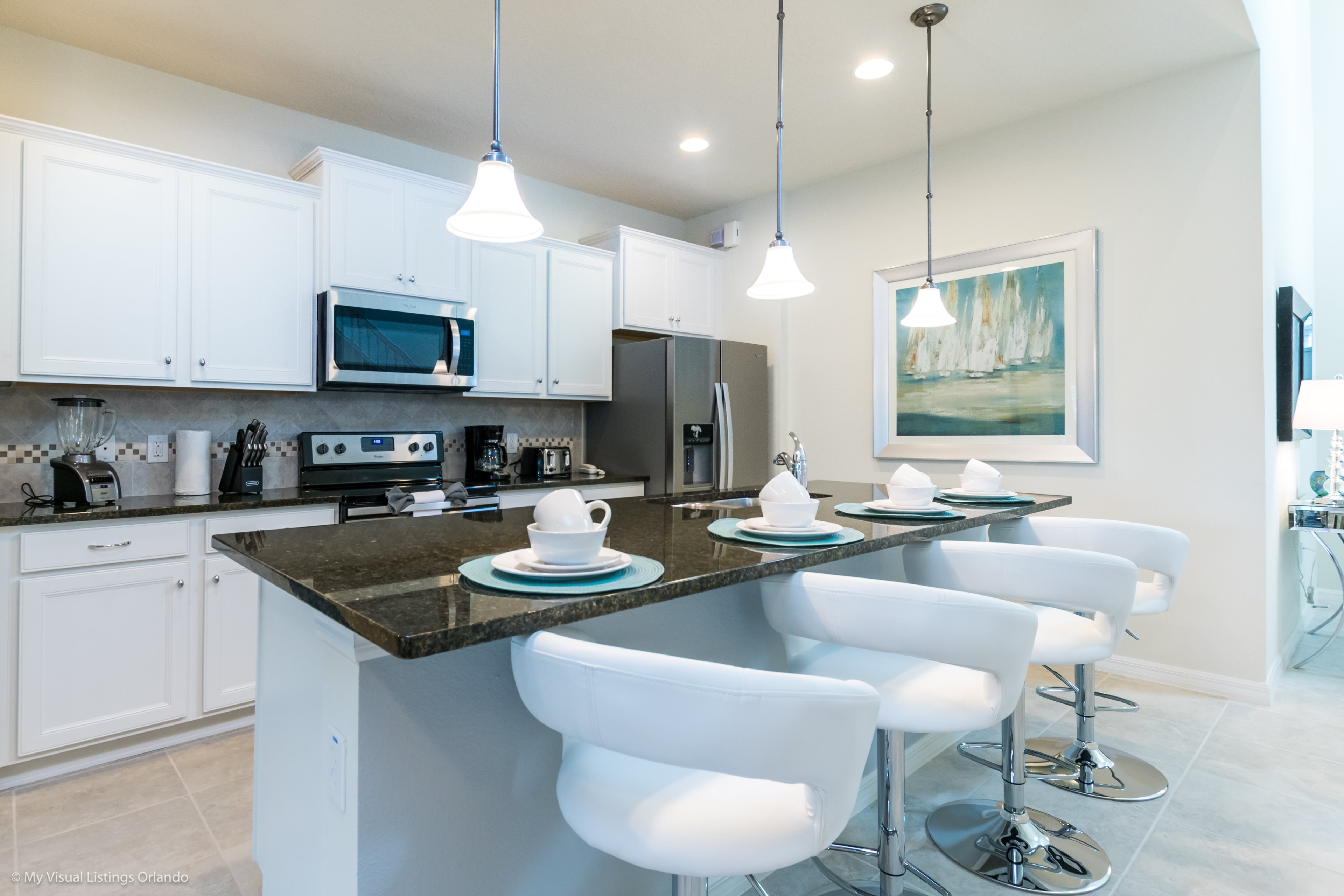 Our beautiful 6-bedroom, 4-bathroom Orlando vacation rental is situated in the sought-after Windsor at Westside community just minutes from Walt Disney World® Resort. The two-story home features two king master suites, two queen bedrooms, a full bedroom and a Star Wars-themed twin bedroom – all with smart LED TVs. For relaxation and entertainment, the home includes a screened-in private pool & spa and lost area living area with a 55” LED TV and Blu-ray player. Stay connected with complimentary high-speed Wi-Fi, cook food & snacks in the fully equipped kitchen, share meals together in the dining area, freshen up your clothes in the laundry area with a washer and dryer, and more.