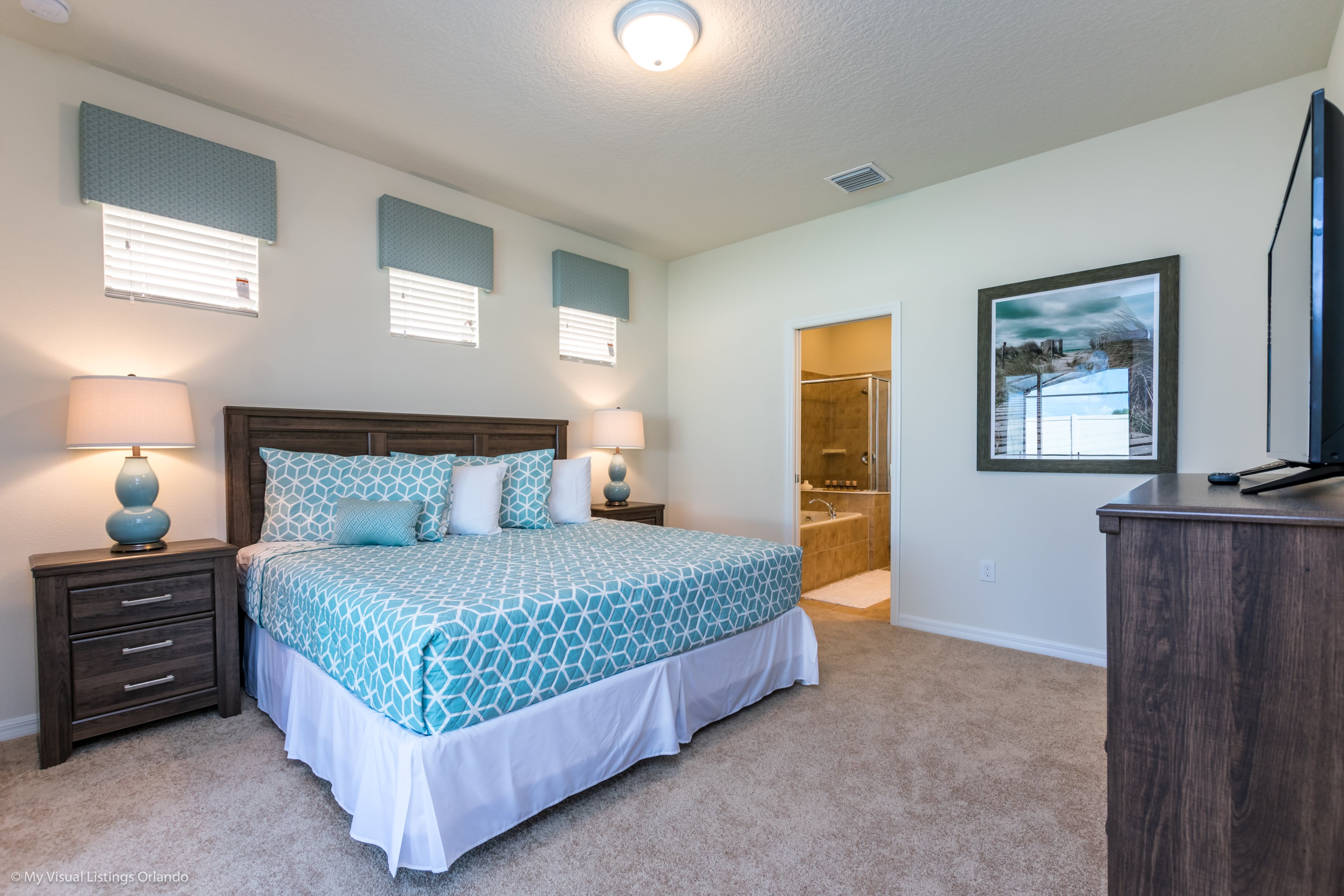 Lots of windows and light! We invite you to enjoy your next vacation at our beautifully decorated 5 bedroom/5 bath villa. The bright and airy fully equipped kitchen and great room is ideal to enjoy all the comforts of home. Sleeping accommodation features an elegant master suite with ing size bed ; Second and third bedroom with a queen size; and two more bedrooms with1 further kingand a twin bed over a full bunk ; enabling you to sleep up to 11 guests. 60'' Flat Screen HDTV in living room, 6 additional HDTV''s. There is also a high chair for your use if needed. Free Local calls and High-speed wireless Internet access.