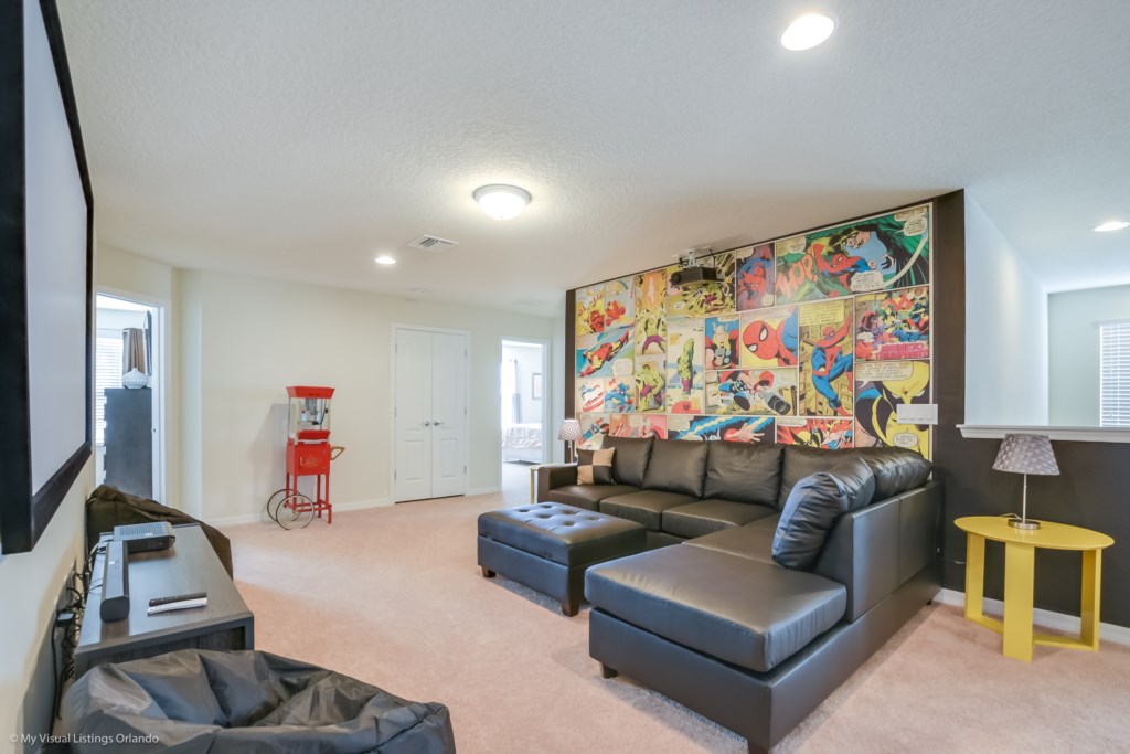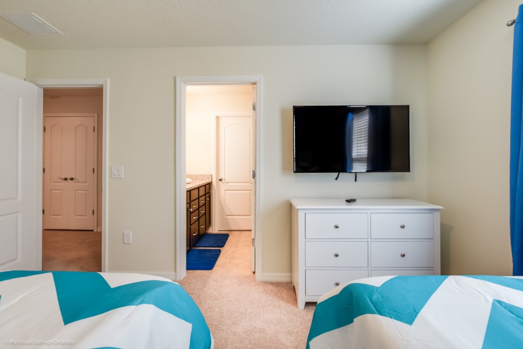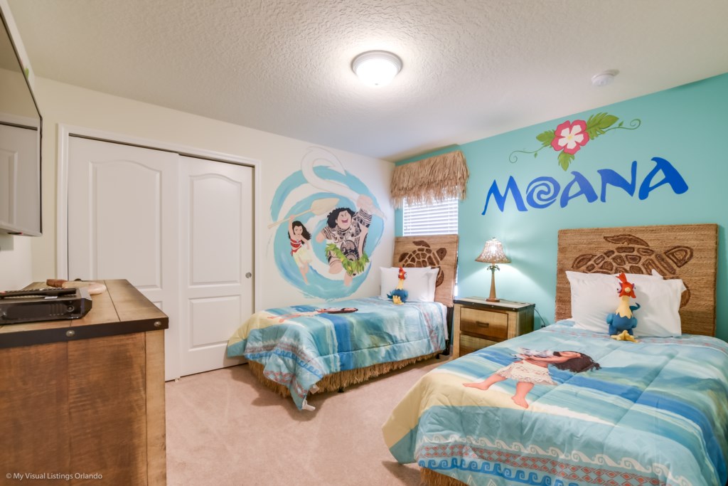 This home has 4 king bedrooms, 3 Rooms with twin beds which are themed and also 2 bedrooms with queen beds . All with flat screen TV's and plenty storage space.