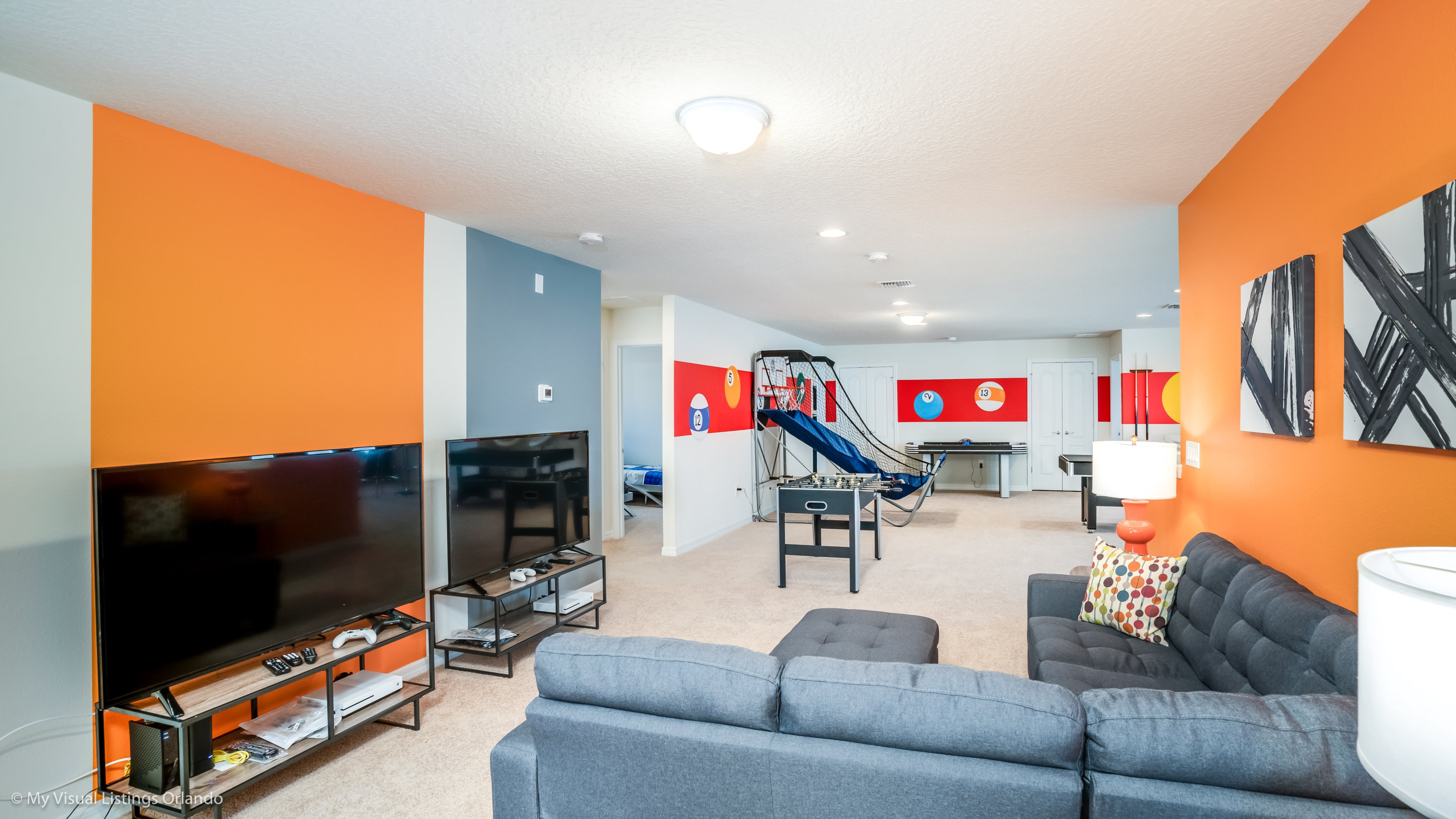 You can also enjoy a game of pool in the games room, or the adults can all watch a movie or a sports game together in the spacious lounge , while the kids watch their own show in the upstairs loft area
