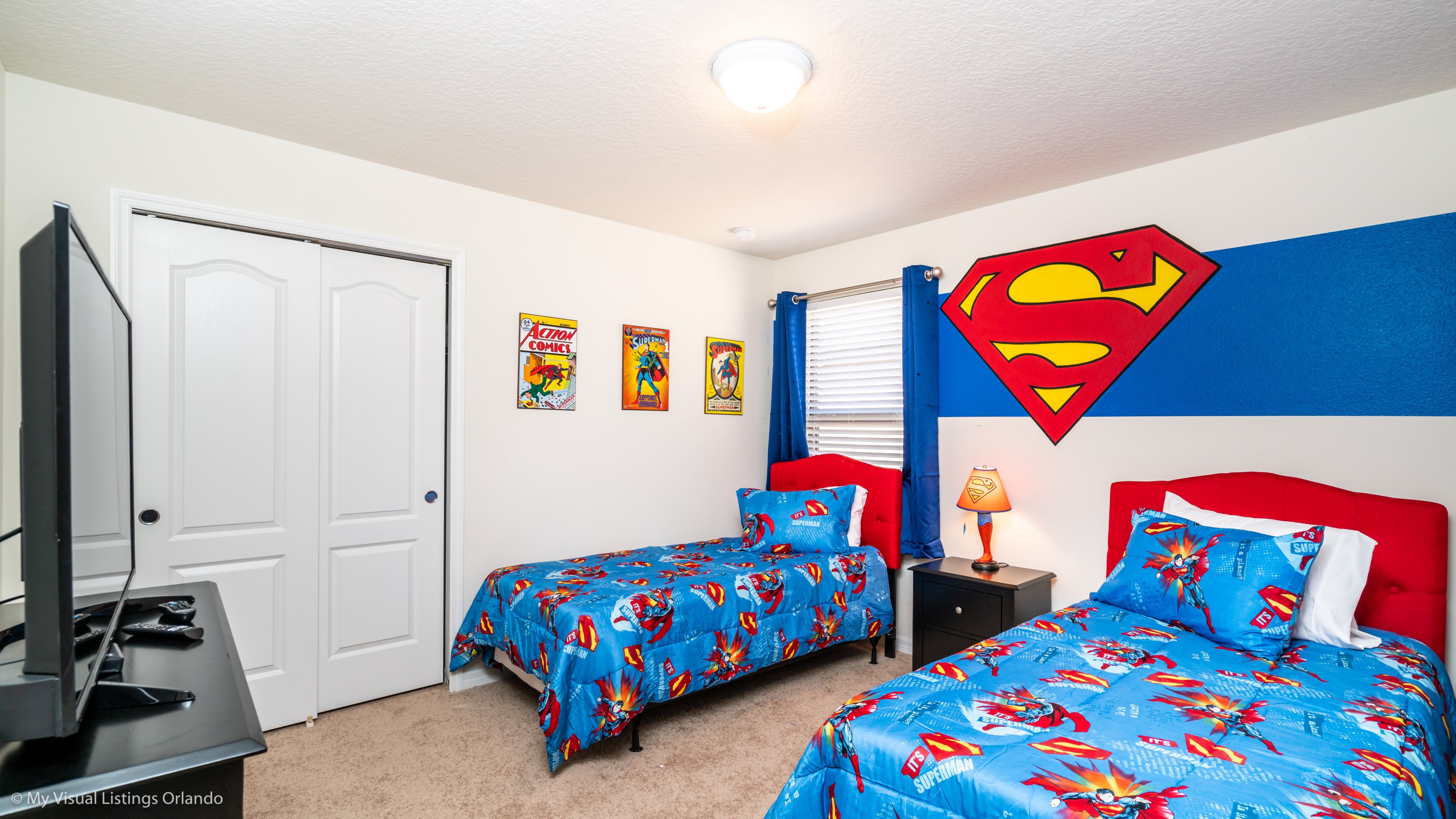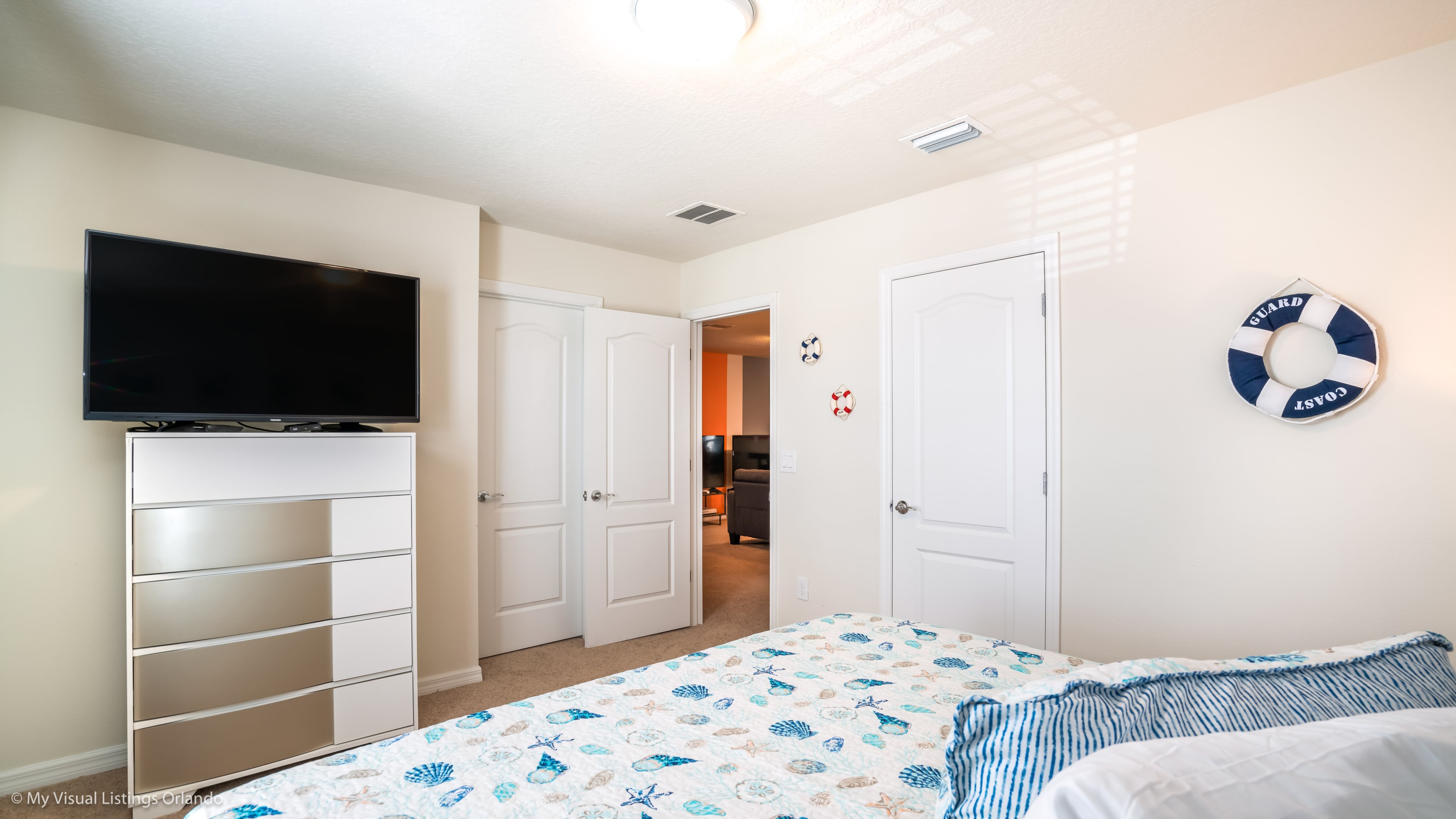 This home has 5 king bedrooms, 3 Rooms with twin beds which are themed and also a bedroom with 2 bouble twin bunk beds . All with flat screen TV's and plenty storage space.