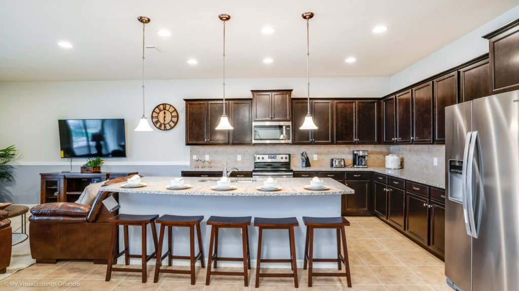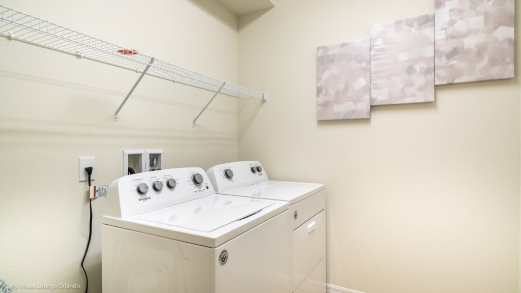 The bright and airy kitchen has all the appliances and utensils that you would expect in your own home. There is also a full size washer and dryer on the 2nd floor for your convenience.