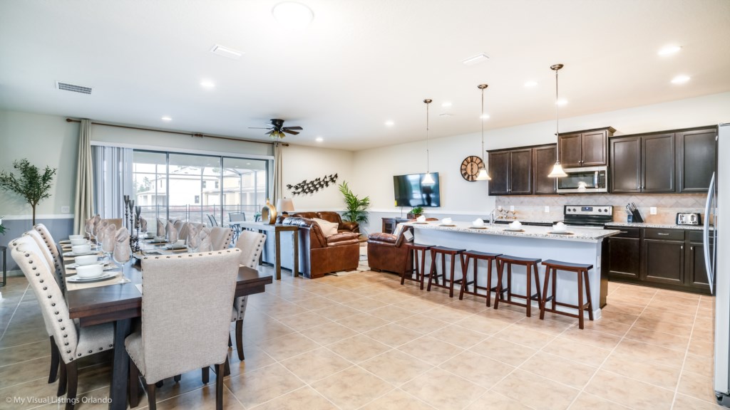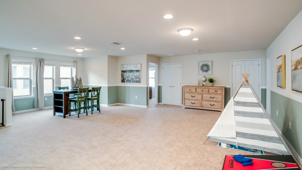 We invite you to enjoy our wonderful home on your next trip to Orlando. Absolutely perfect for multi-family groups, or golf groups, this property features all the comforts of home and more! Book your vacation now at this beautiful home with pool and spa located in the gorgeous Windsor at Wesside Gate Resort. Plus as our guest you get to enjoy all the amenities of the resort such as the lazy river, splash pool for the kids, 2 other large pools, tennis courts, fully equipped exercise room, on site cinema, arcade games, and family restaurant.