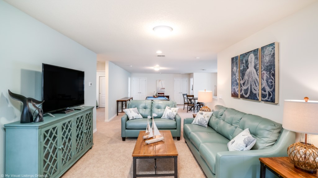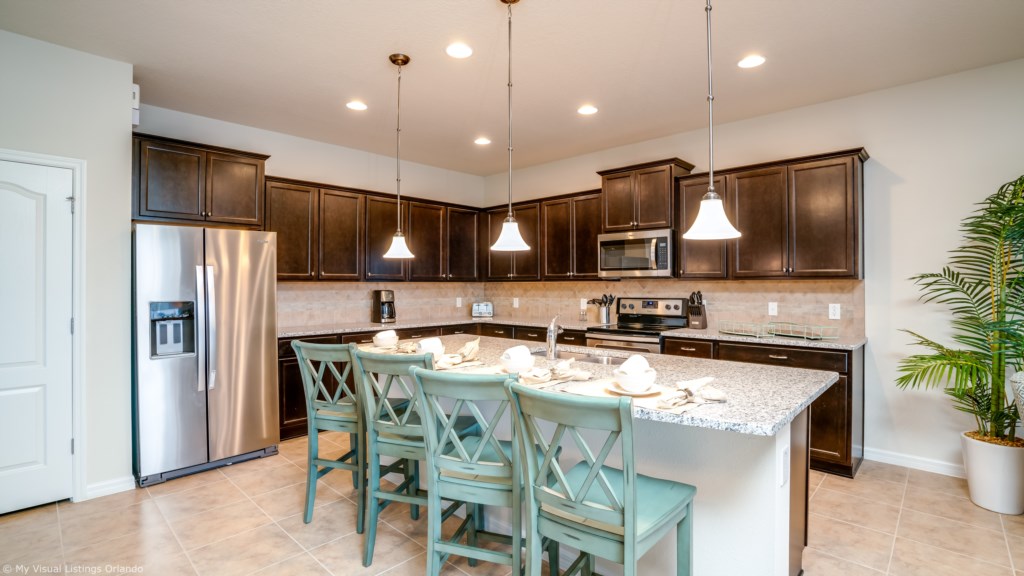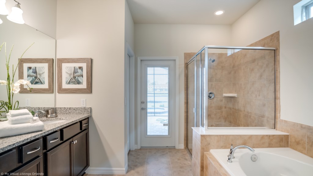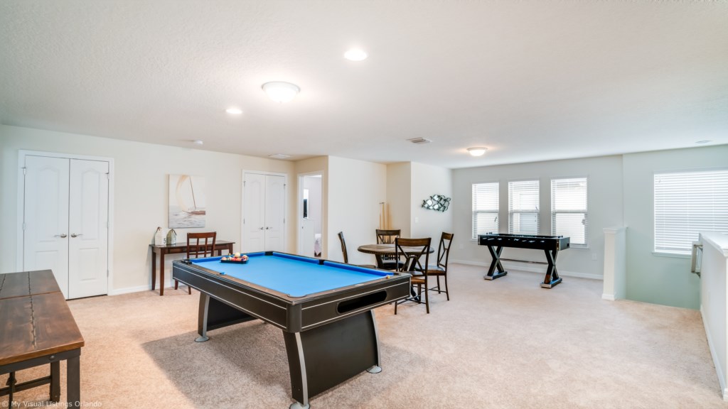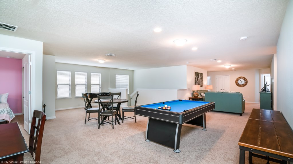 We invite you to enjoy our wonderful home on your next trip to Orlando. Absolutely perfect for multi-family groups, or golf groups, this property features all the comforts of home and more! Book your vacation now at this beautiful home with pool and spa located in the gorgeous Windsor at Wesside Gate Resort. Plus as our guest you get to enjoy all the amenities of the resort such as the lazy river, splash pool for the kids, 2 other large pools, tennis courts, fully equipped exercise room, on site cinema, arcade games, and family restaurant.