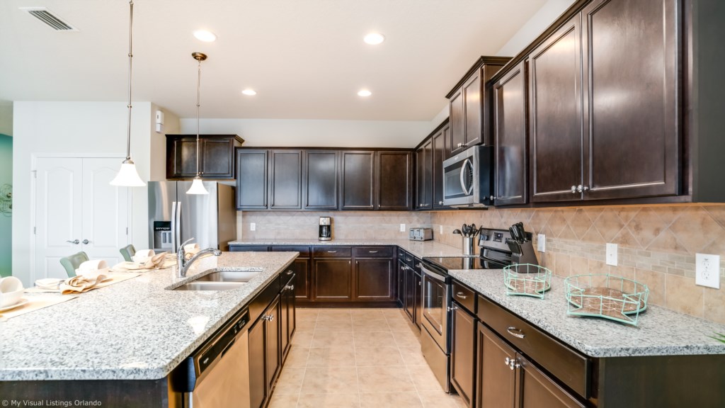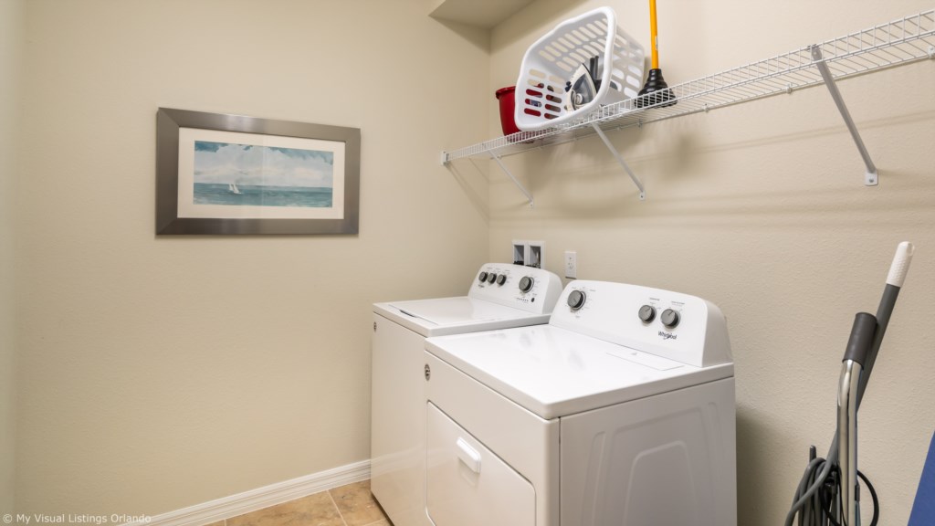 The bright and airy kitchen has all the appliances and utensils that you would expect in your own home. There is also a full size washer and dryer on the 2nd floor for your convenience.