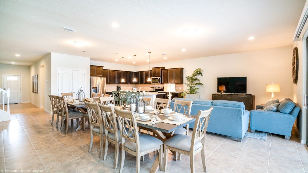 You will feel immediately relaxed as you enter our 9 bedroom, 6 bathroom executive home which sleeps up to 19 comfortably, . The living area offers plenty of space for all guests to spread out. For family get togethers the dining area is ideal to share a meal around the elegant dining table or have a quick meal at the kitchen breakfast bar.