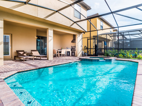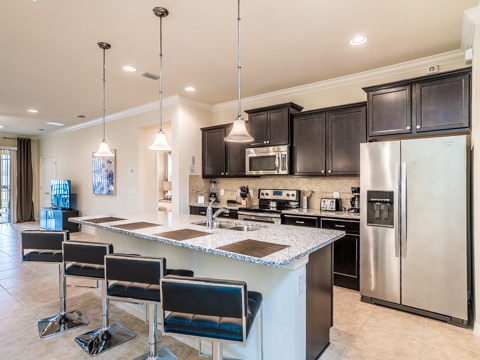 Welcome to Champions Gate Resort, a world-class vacation home community featuring the Oasis clubhouse. This home has achieved the luxurious Grand Status. The open floor plan is professionally decorated throughout and includes a stunning leather furniture package with a large 55-inch flat-screen TV. The accommodations consist of 6 bedrooms and 4.5 bathrooms, sleeping up to 12. Everyone in your party will have plenty of space for privacy and will sleep comfortably. The bedroom configurations consist of 2 king bedrooms, 2 queen bedroom and 2 twin bedrooms. For all those young at heart, there is even a themed Mickey bedroom. The game room features table tennis and foosball, perfect for some friendly competition. Popular dining options are nearby or simply enjoy preparing meals in the fully furnished, upgraded kitchen. Upgrades includes stainless steel appliances, granite counter tops and custom cabinetry. For dining, there is plenty of seating at both the kitchen counter and the oversized dining room table. The private pool and spa has plenty of poolside furniture to provide hours of relaxation. And there is an outside patio kitchen, with grill – what could be better than that? Disney, SeaWorld, Universal and the finest in premium outlet shopping is nearby. Free WIFI and a washer and dryer are included for your convenience. All the comforts of your own home, with all the amenities of a world-class resort, now that is a great combination!!